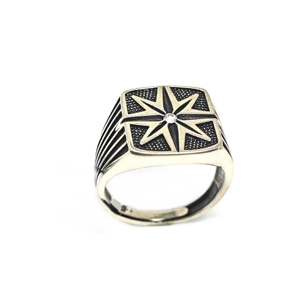 Anello Chevalier Rosa dei Venti Quadrato in Argento 925 mis 23 Regolabile
