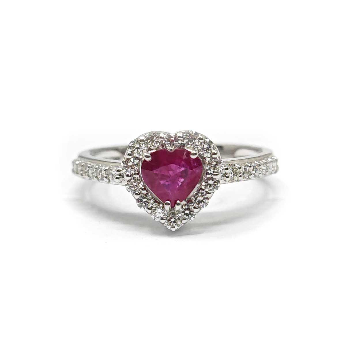 Anello con Diamanti e Rubino Cuore in Oro 18kt