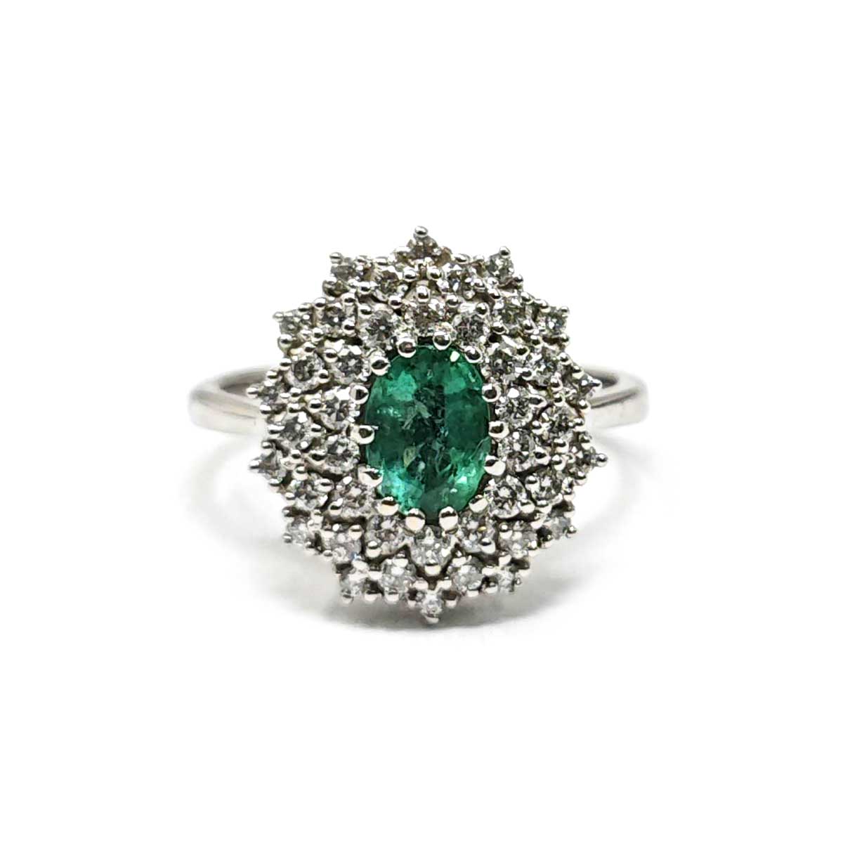 Anello con Smeraldo CT 0,80 e Diamanti CT 0.72