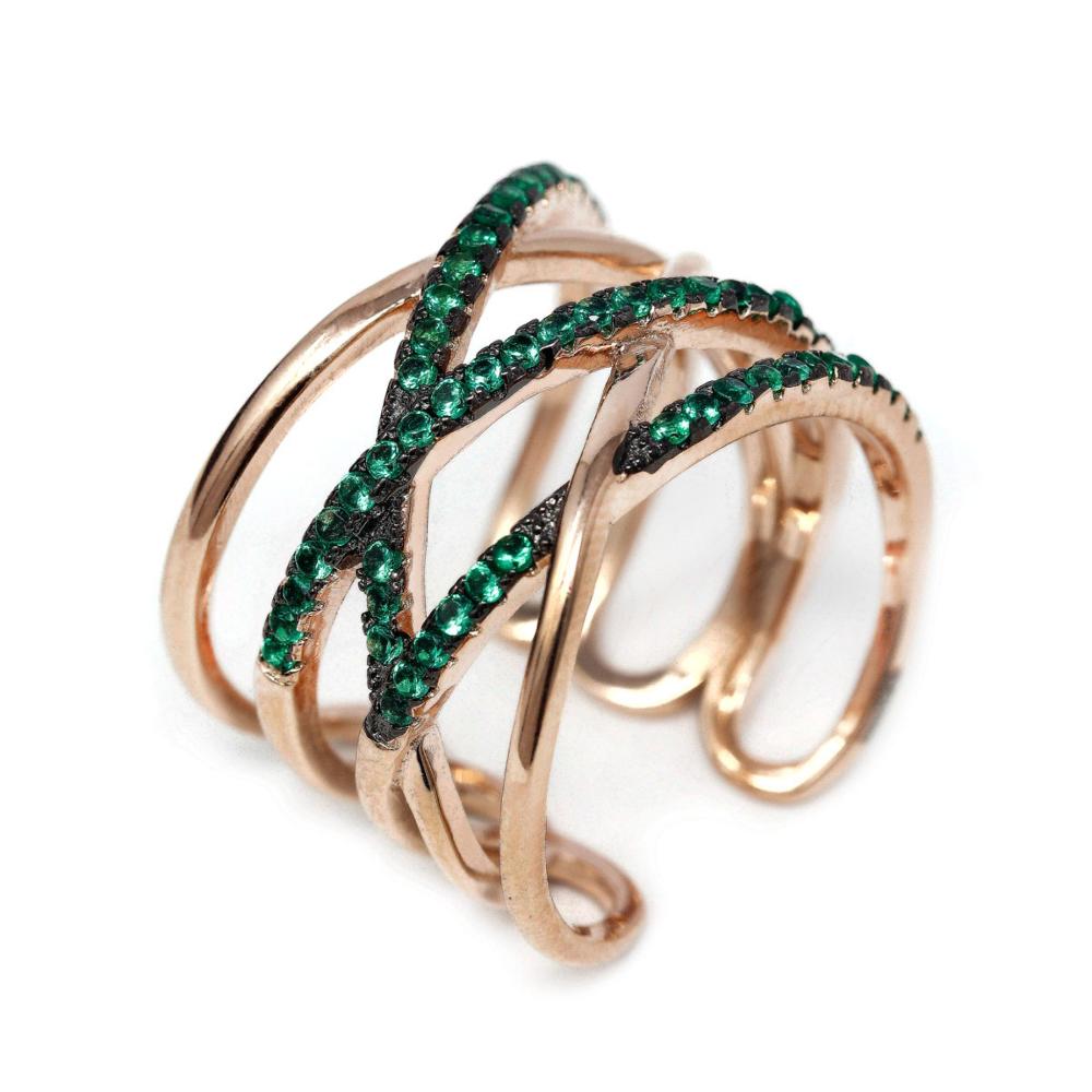 Anello Facia è realizzata in Argento 925. Come tutti i gioielli QU4TRO.0 anche questo Anello viene progettato e lavorato in Italia mediante l'utilizzo delle più moderne tecnologie e rifinito a mano per garantirne il massimo dettaglio e la più elevata qualita'. Questo gioiello viene proposto con una placatura in oro Rosa Lucido è zirconi verdi disponibile nella taglia 12.5 regolabile