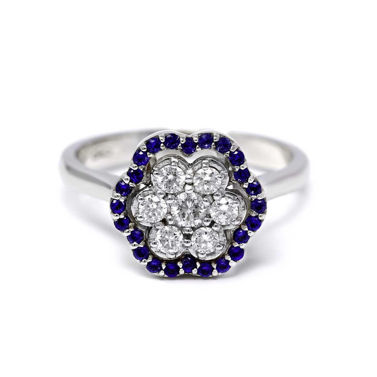 Anello Linea Fiore con 24 Zaffiri TD CT 0.24 e 7 Diamanti CT 0.36