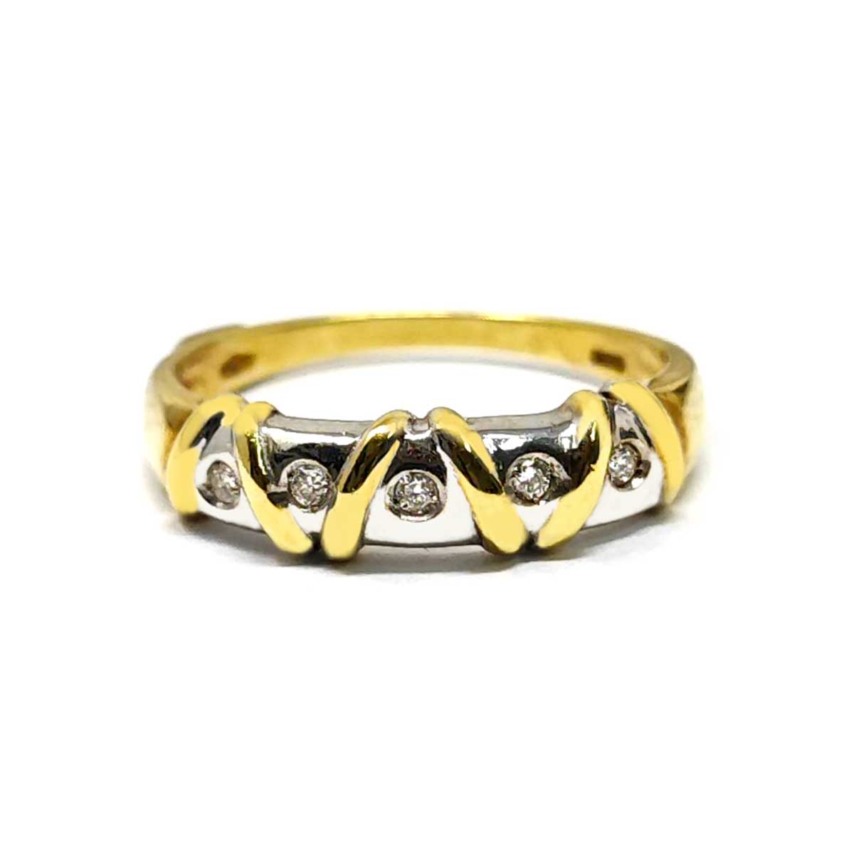 Anello Veretta Stilizzata 5 Pietre Bicolore CT 0.15