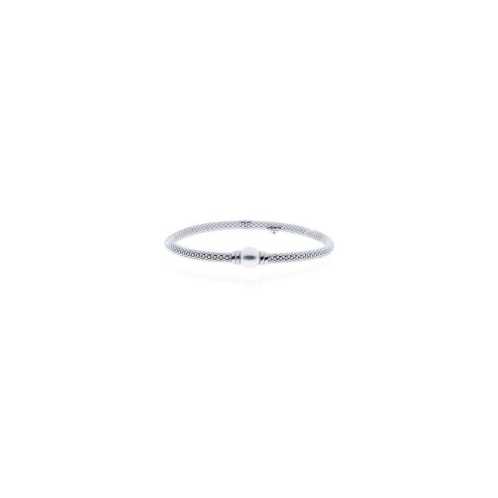 Bracciale UNOAERRE in argento 925 elasticizzato, effetto lucido, arricchito da una perla centrale.