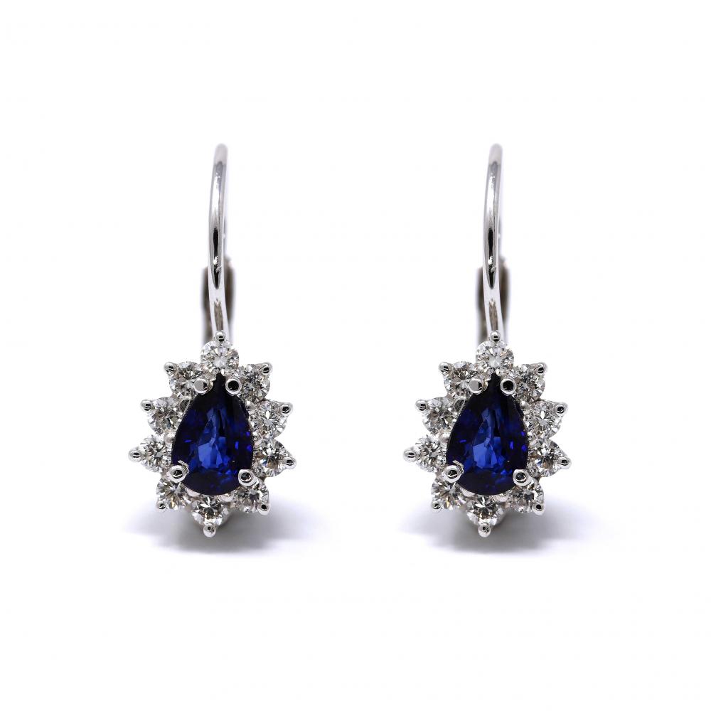 Gli orecchini montano centralmente 2 zaffiri taglio Goccia 4x5
