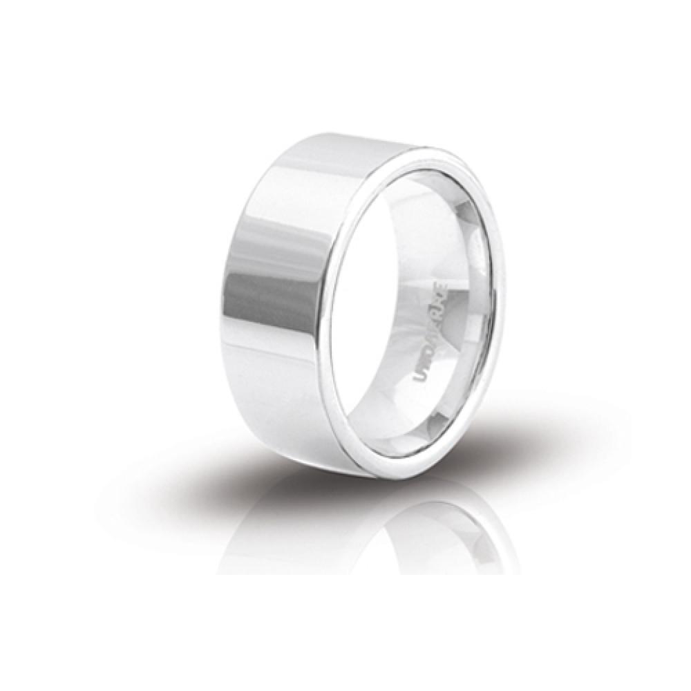 Fedina di fidanzamento "Orchidea" in argento 925 bianco piatta liscia in finitura lucida. Mm 7,00