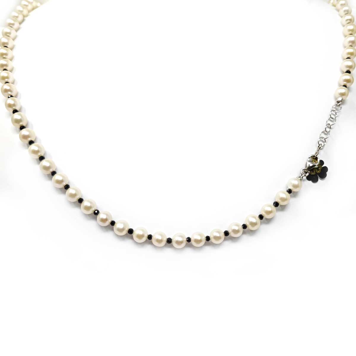 Girocollo di Perle 5/5,5 con Quadrifoglio e Spinello Nero 50cm