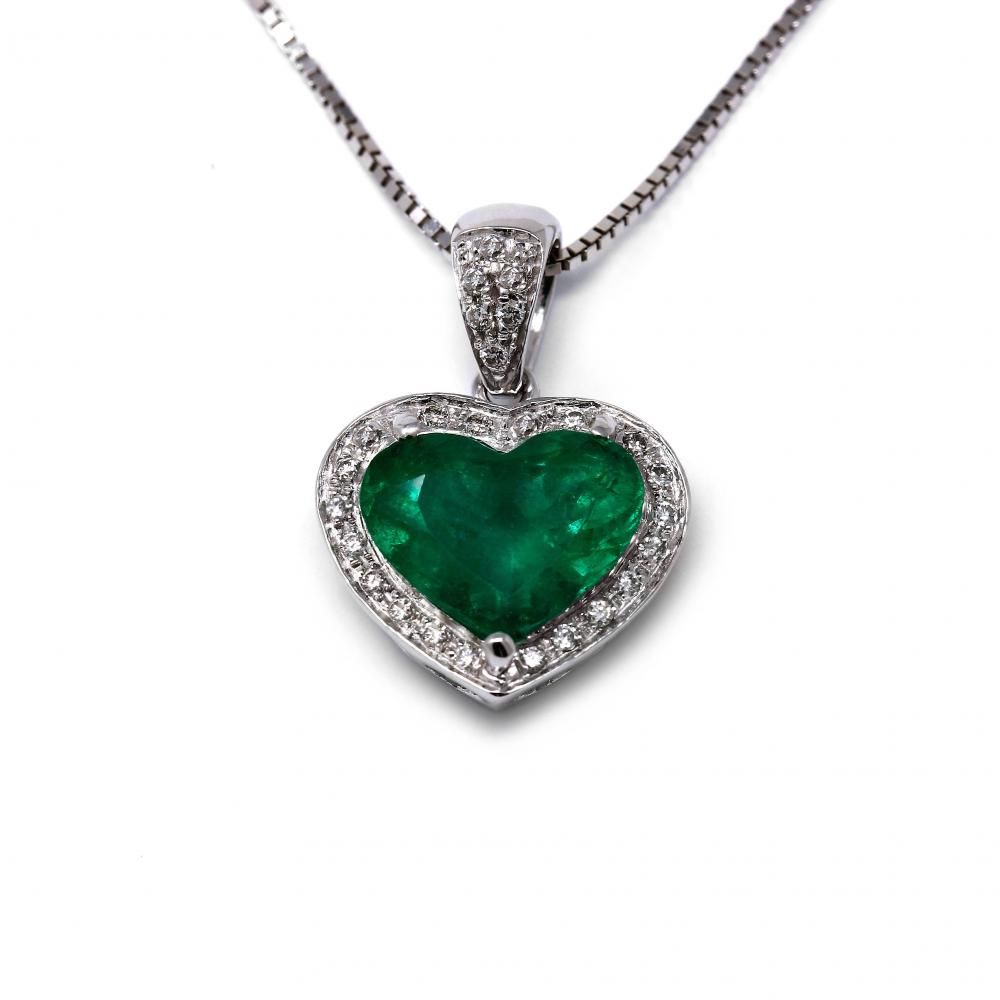 Pendente a Cuore di Smeraldo CT 2.41 e Diamanti Bianchi CT 0.16