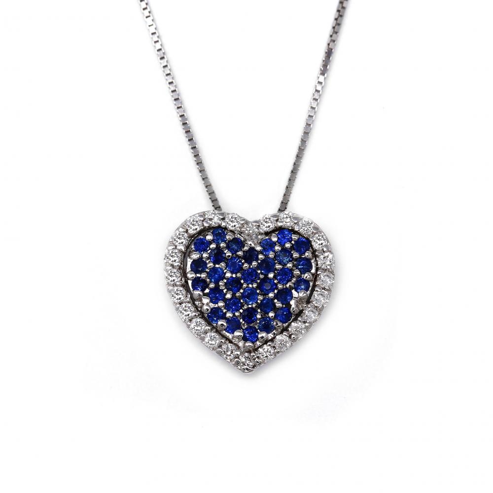 Pendente a Cuore con Zaffiri CT 0.37 e Diamanti Bianchi CT 0.26