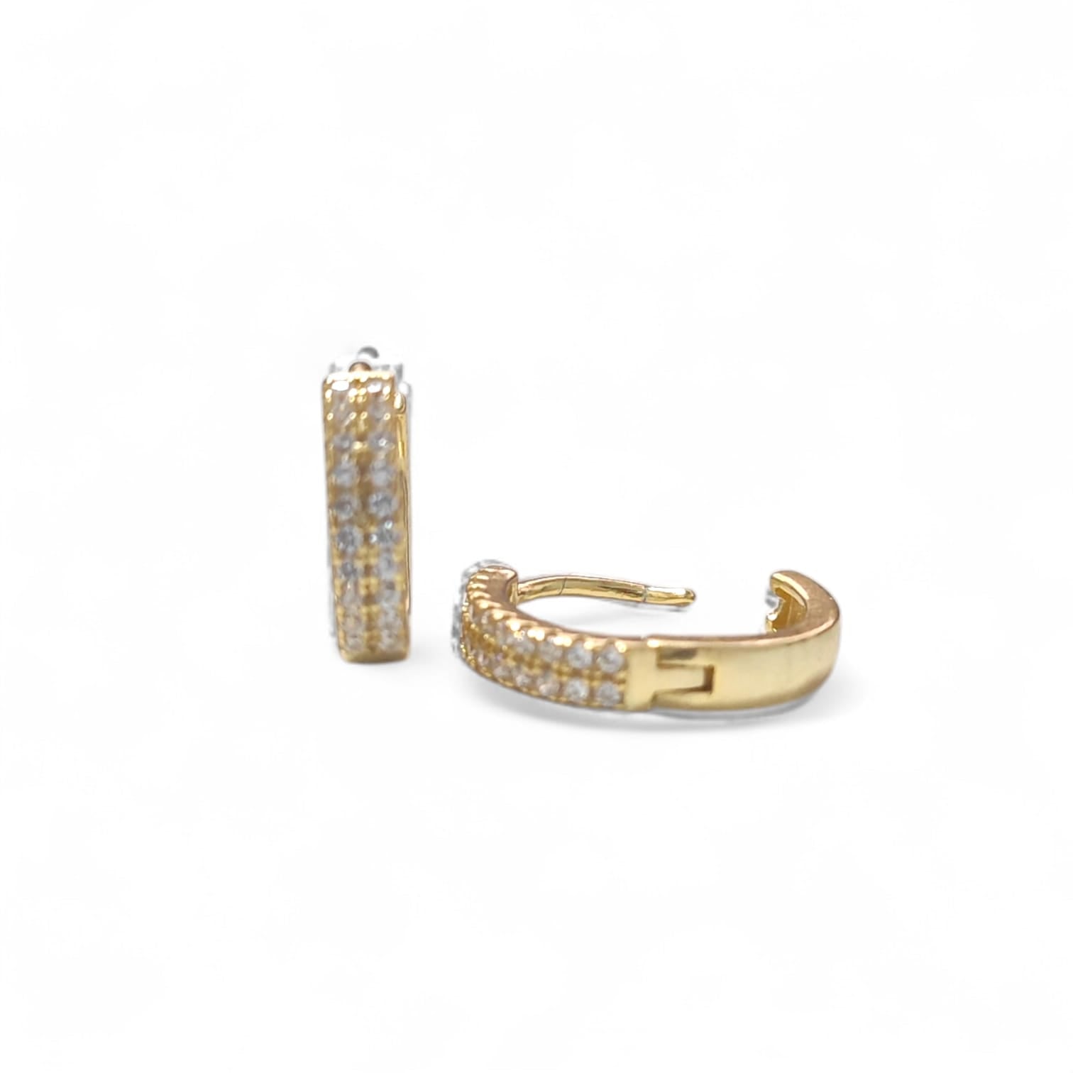 Orecchini Cerchio in Argento 925 Dorato con Doppia Fila di Zirconi