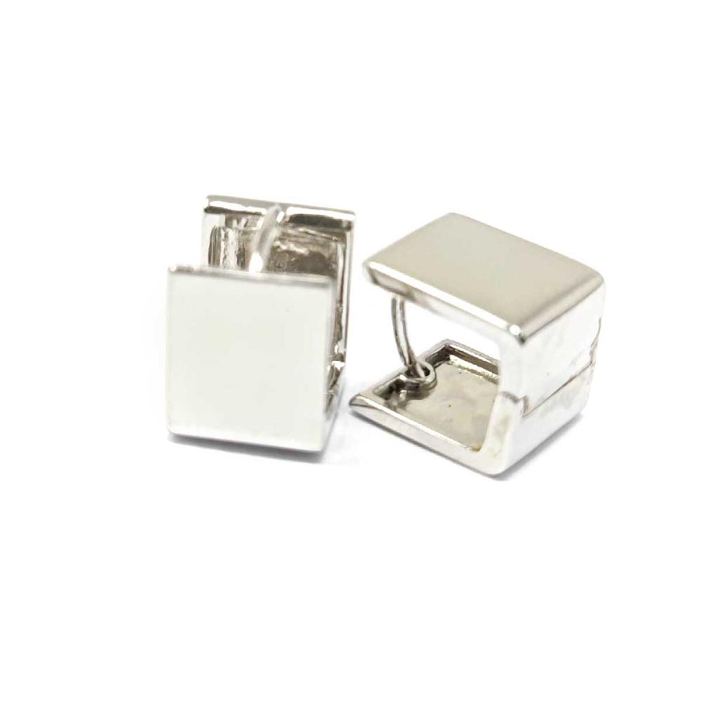 Orecchini a cerchio con forma quadrata in argento lucido