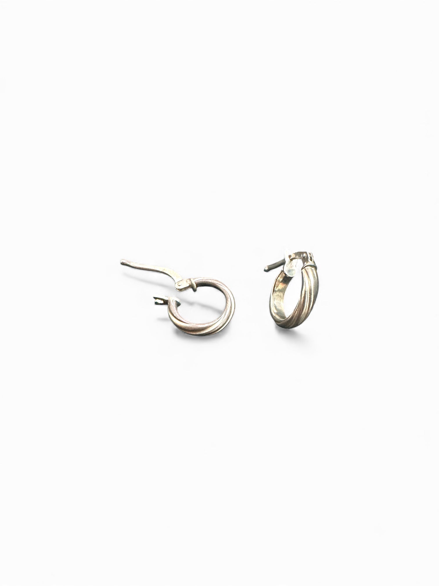 Orecchino a cerchio con lavorazione intrecciata, dettagli morbidi e luminosi. -