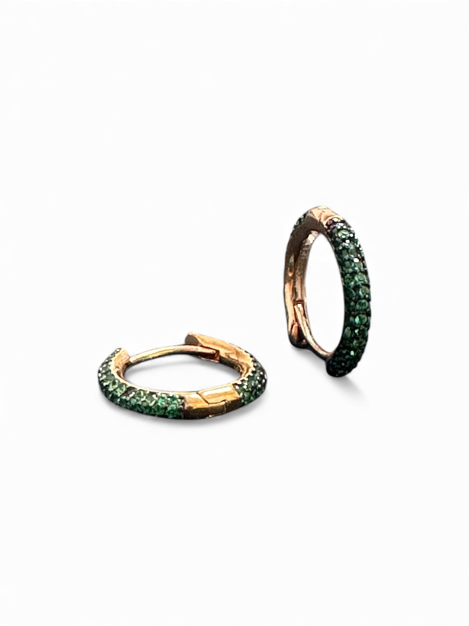 Orecchini a Cerchio in Argento Rosato con Zirconi Verdi