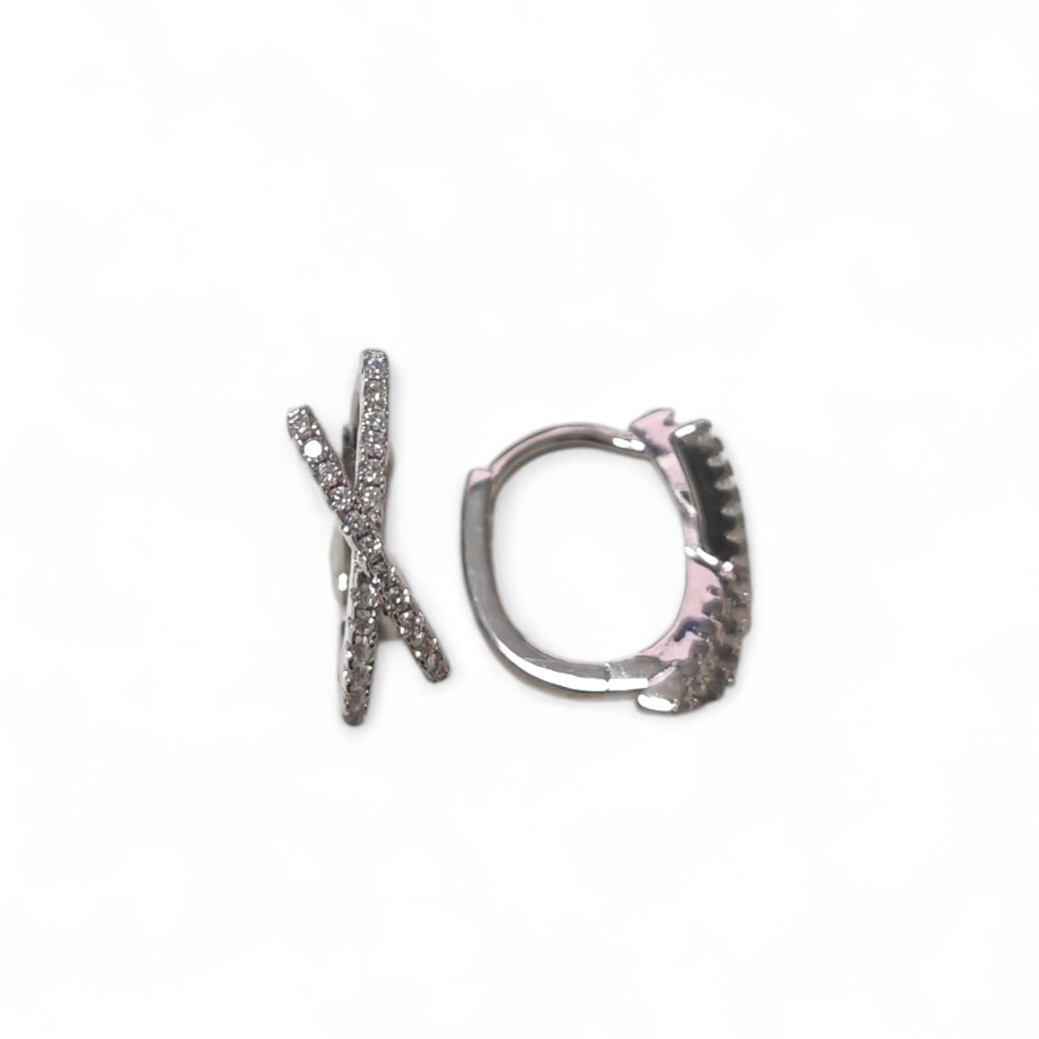 Orecchini a Cerchio Incrociati con Zirconi in Argento 925