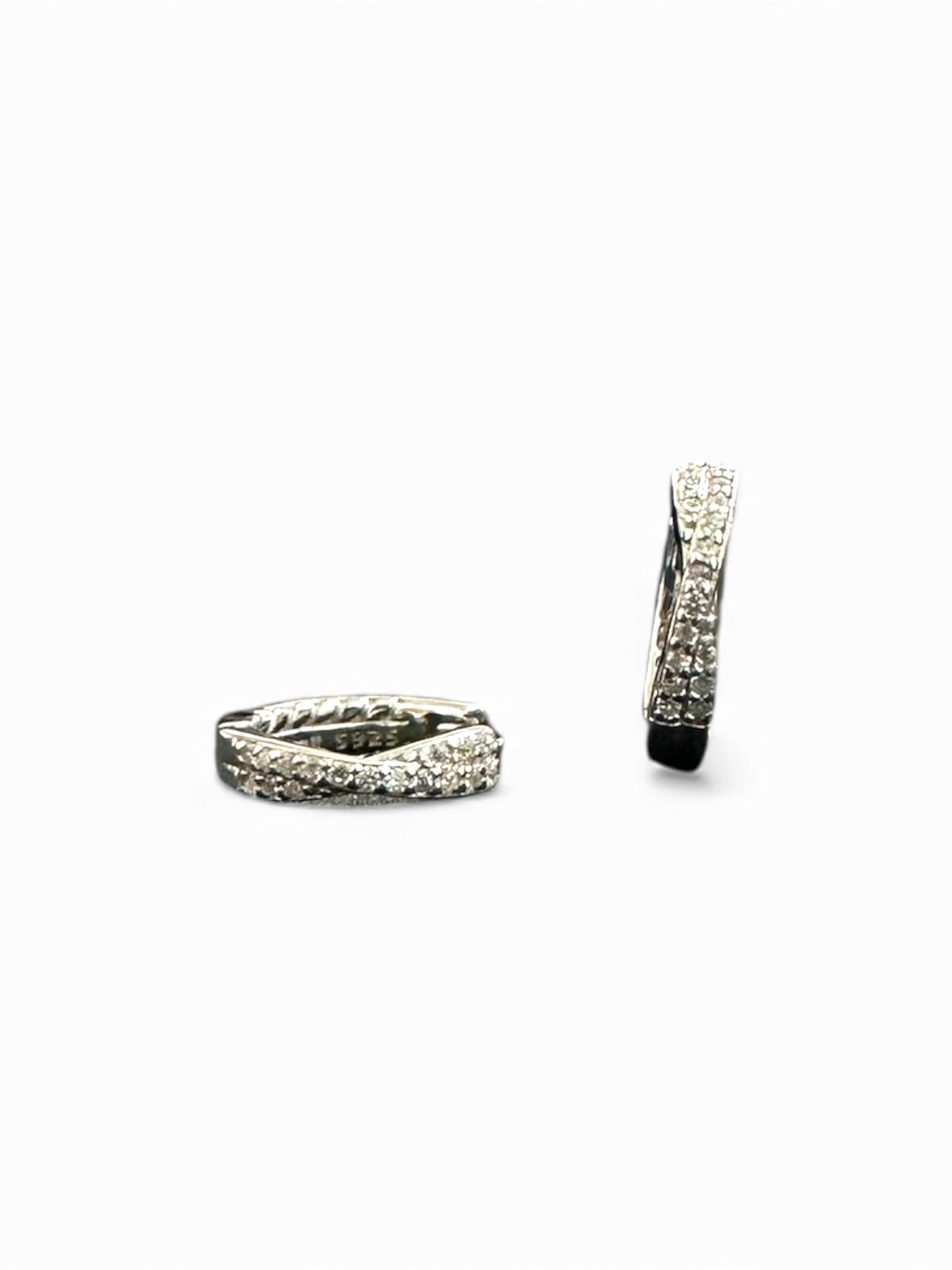 Orecchini a Cerchio Intrecciati in Argento 925 con Zirconi