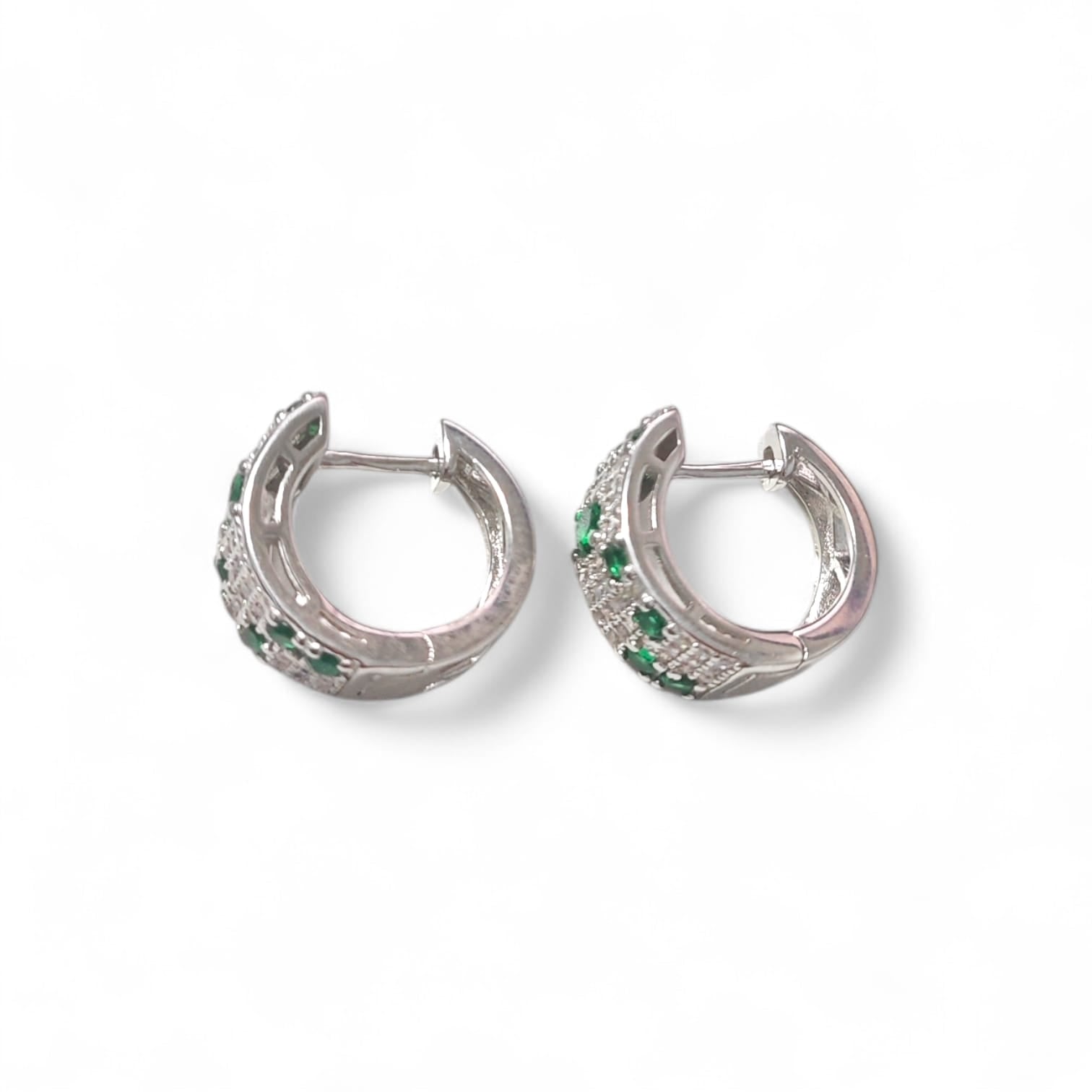 Orecchini Cerchio Argento 925 Rodiato con Zirconi Verdi e Bianchi – Eleganza Brillante