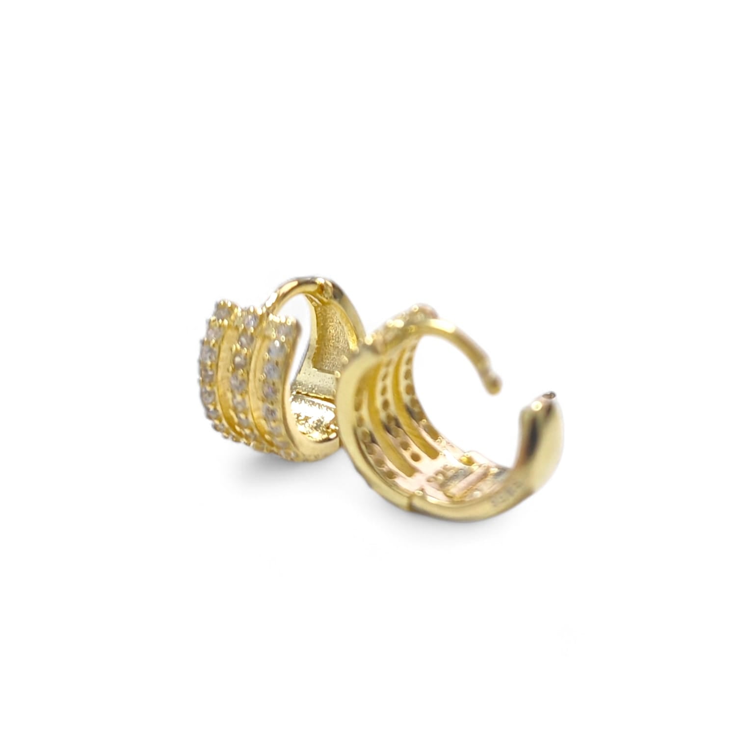 Orecchini Cerchio in Argento 925 Dorato con Triplo Giro di Zirconi – Lusso Brillante