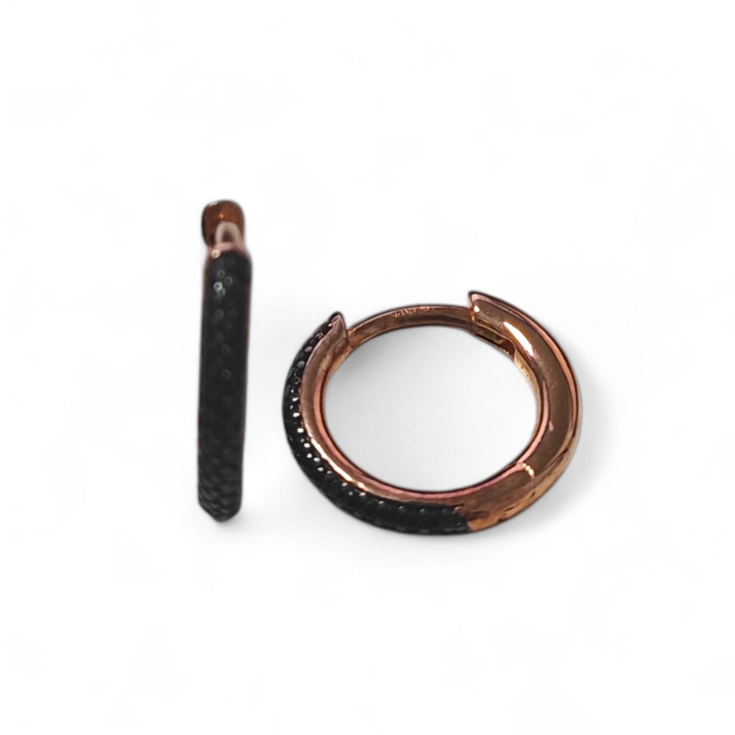 Orecchini a Cerchio in Argento Rosé con Smalto Nero e Zirconi Neri