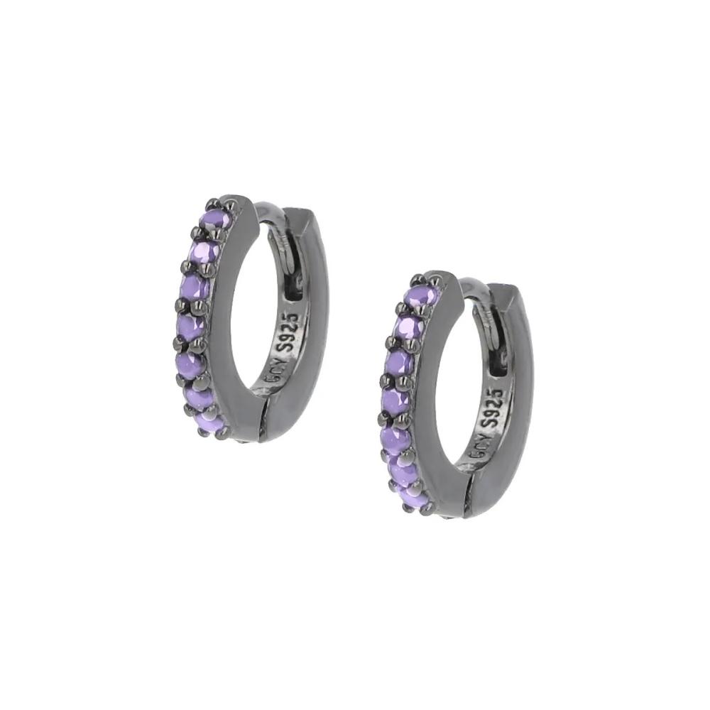 Orecchini in Argento 925 con zirconi lilla - Rutenio - Diametro 1,2 cm, pietre Ø 1 mm.Ref. ET1NLI