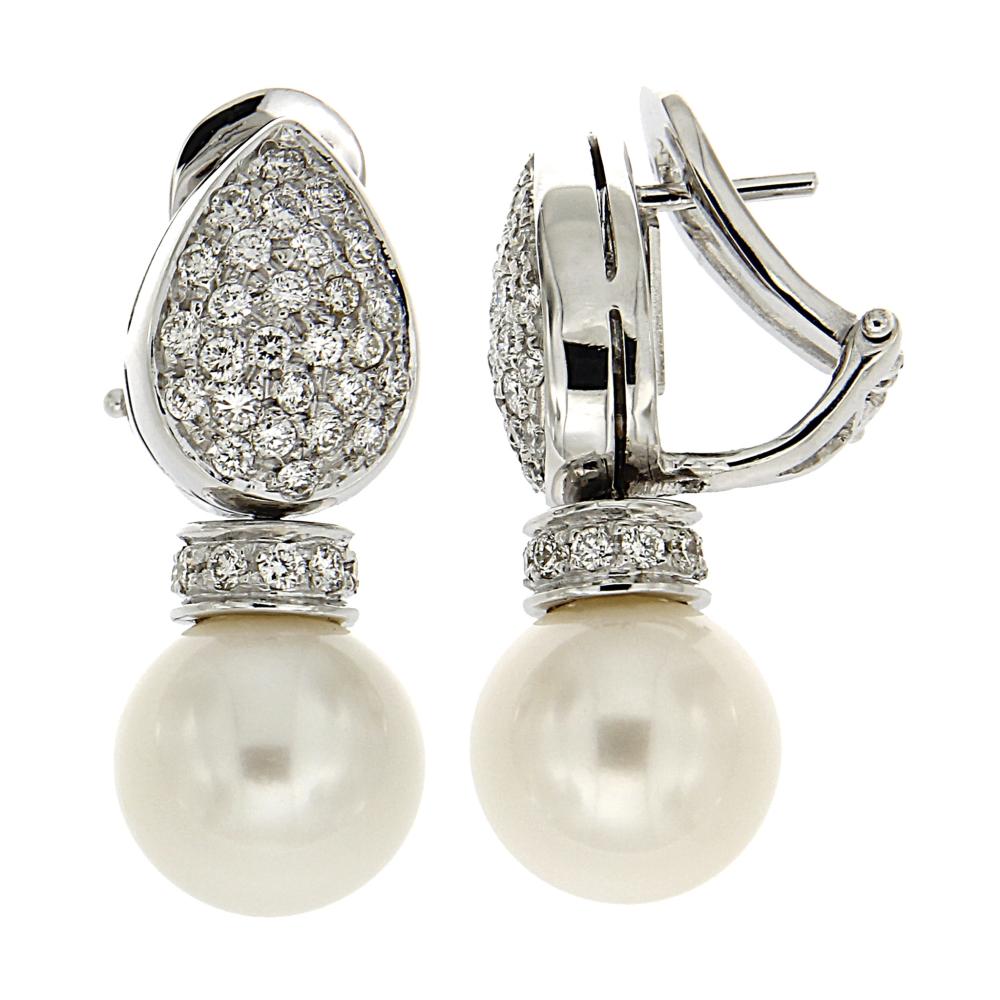 Orecchini con Diamanti e Perla Akoya 9.5/10 mm e Diamanti CT 0.90