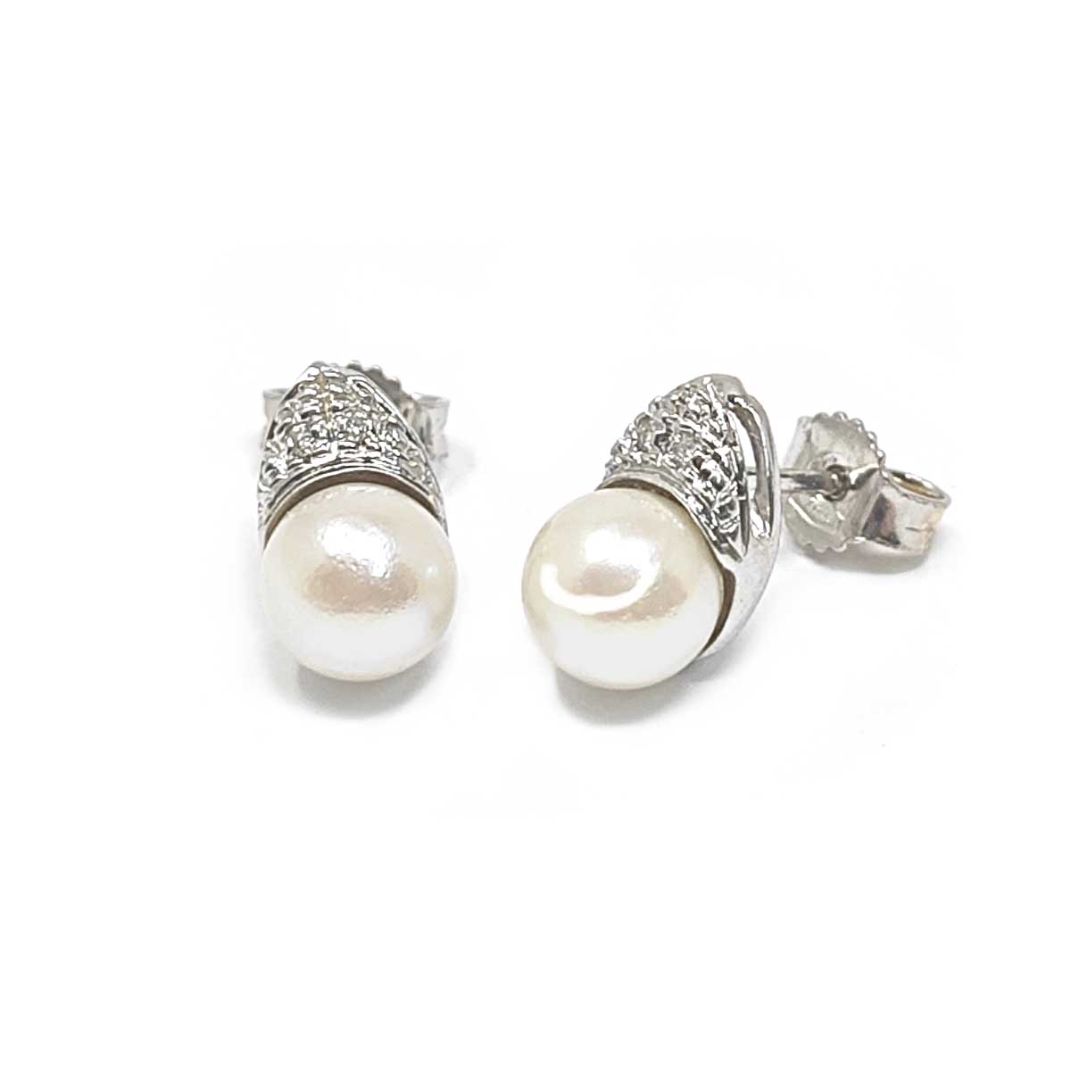 Orecchini con Perla 6/6.5mm Akoya e Diamanti CT 0.04