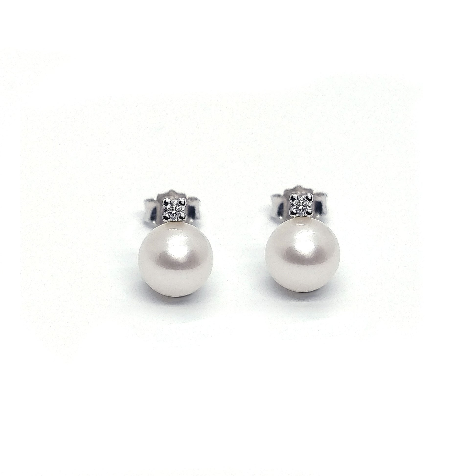 Orecchini con Perla Akoya 6/6.5 mm e 2 Diamanti CT 0.04