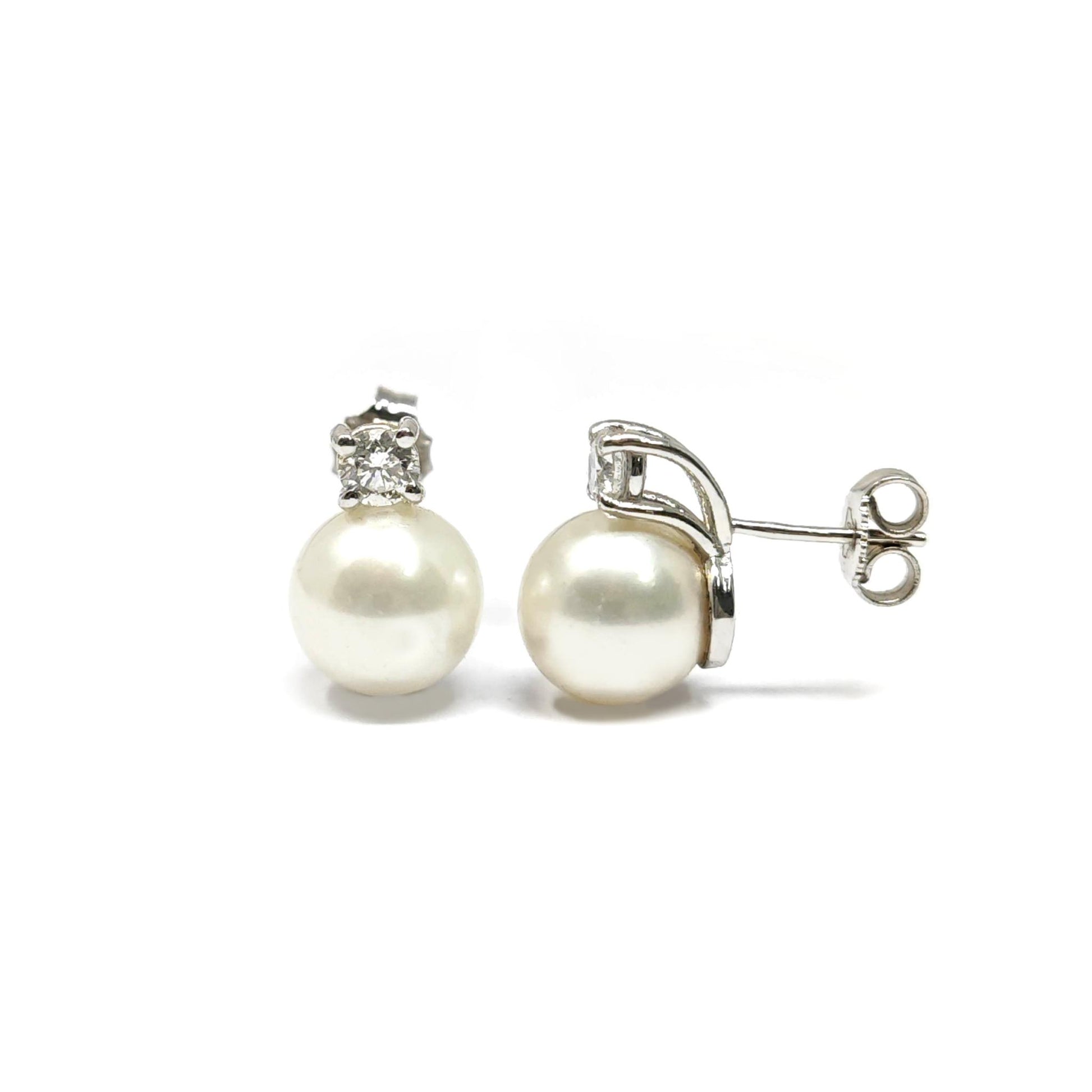 Orecchini con Perle Akoya 7/7,5 mm e 2 Diamanti CT 0.06
