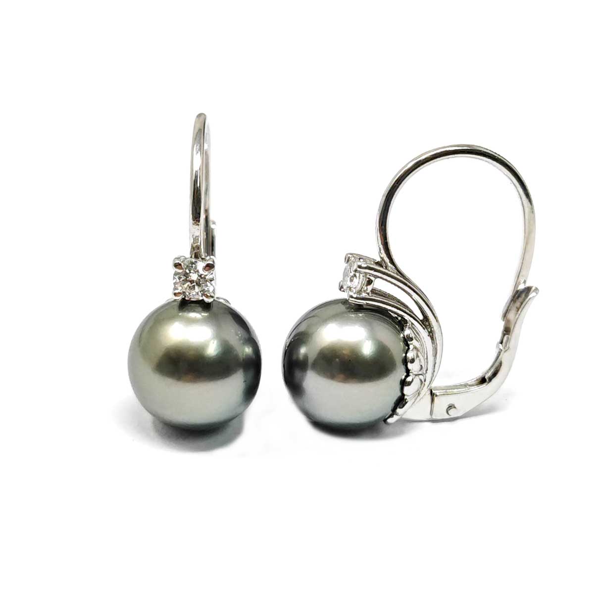 Orecchini con Perle Tahiti mm 11/11.5 con Diamanti CT 0.30