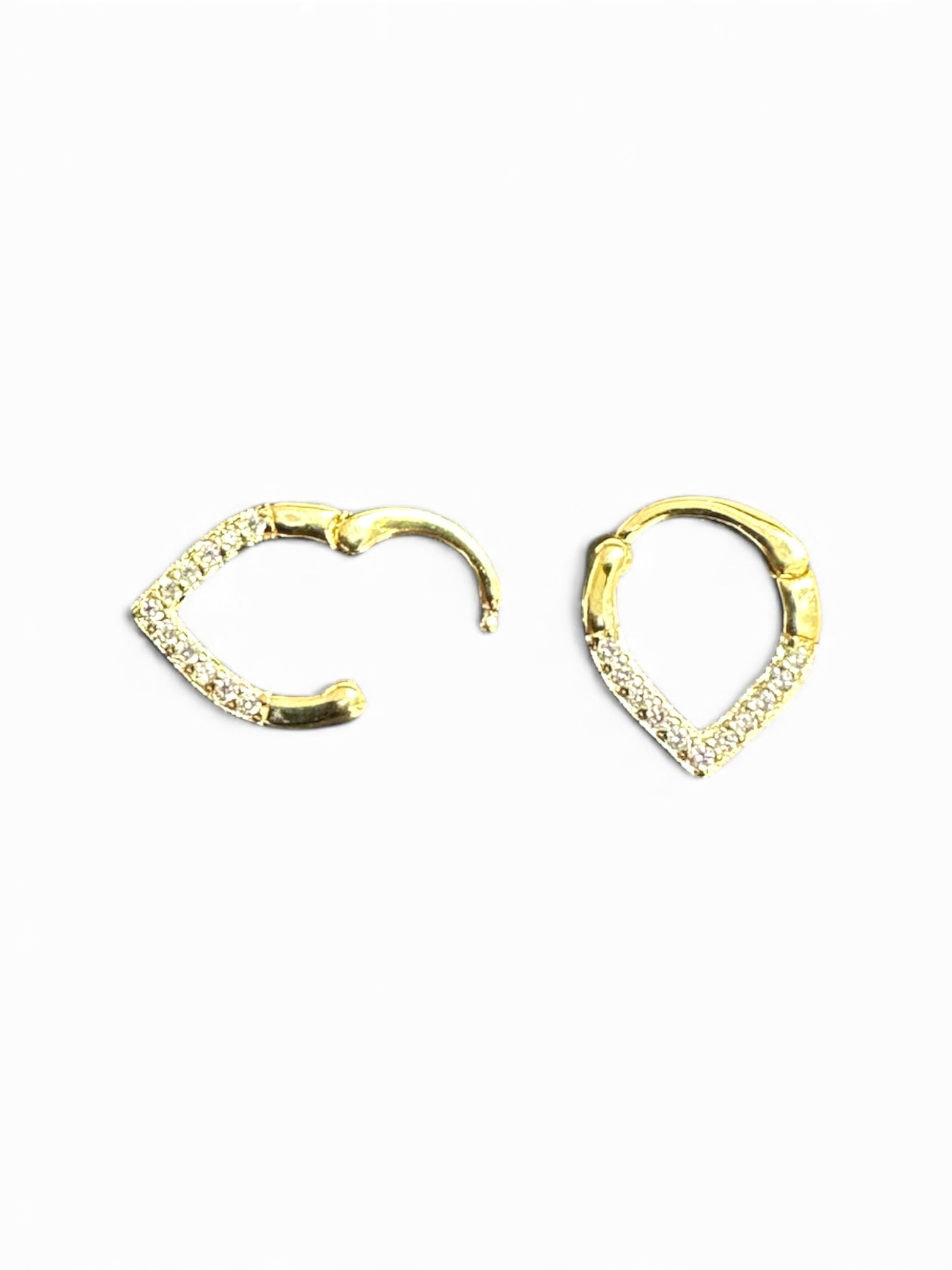 La forma stilizzata del cuore dona un design moderno, mentre la fila di zirconi bianchi incastonati illumina il viso con delicatezza.