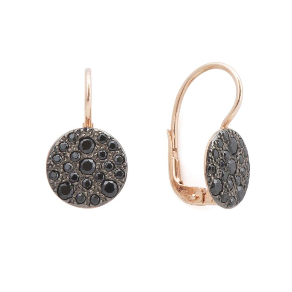 Orecchino monachella pendente tondo piccolo con pavè in argento 925 o argento rosè ( Diametro mm 11)