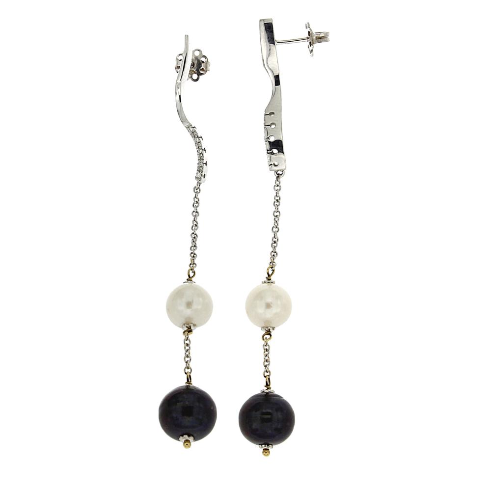 Orecchini Pendenti con Perle e Diamanti CT 0.10