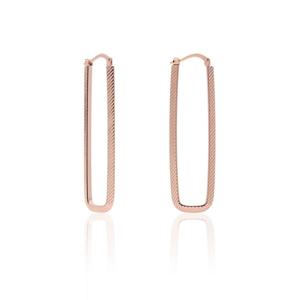 Orecchini a maglia ovale con tubo quadro e decoro a righe. Un accessorio moda di grande impatto che trae la sua forza da un design essenziale, ma riconoscibile. Ispirazione tradizionale in prospettiva moderna per colpire. Abbinali a collana e bracciale per una straordinaria dichiarazione di stile.