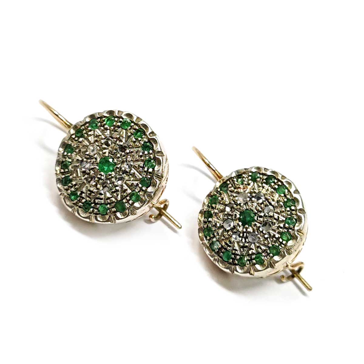 Orecchini Toppa Palermitana con Smeraldi e Diamanti Corone