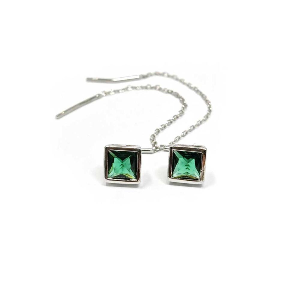Monorecchino quadrato con pietra verde o blu disponibile in argento 925 rodiato bianco e in argento 925 dorato.