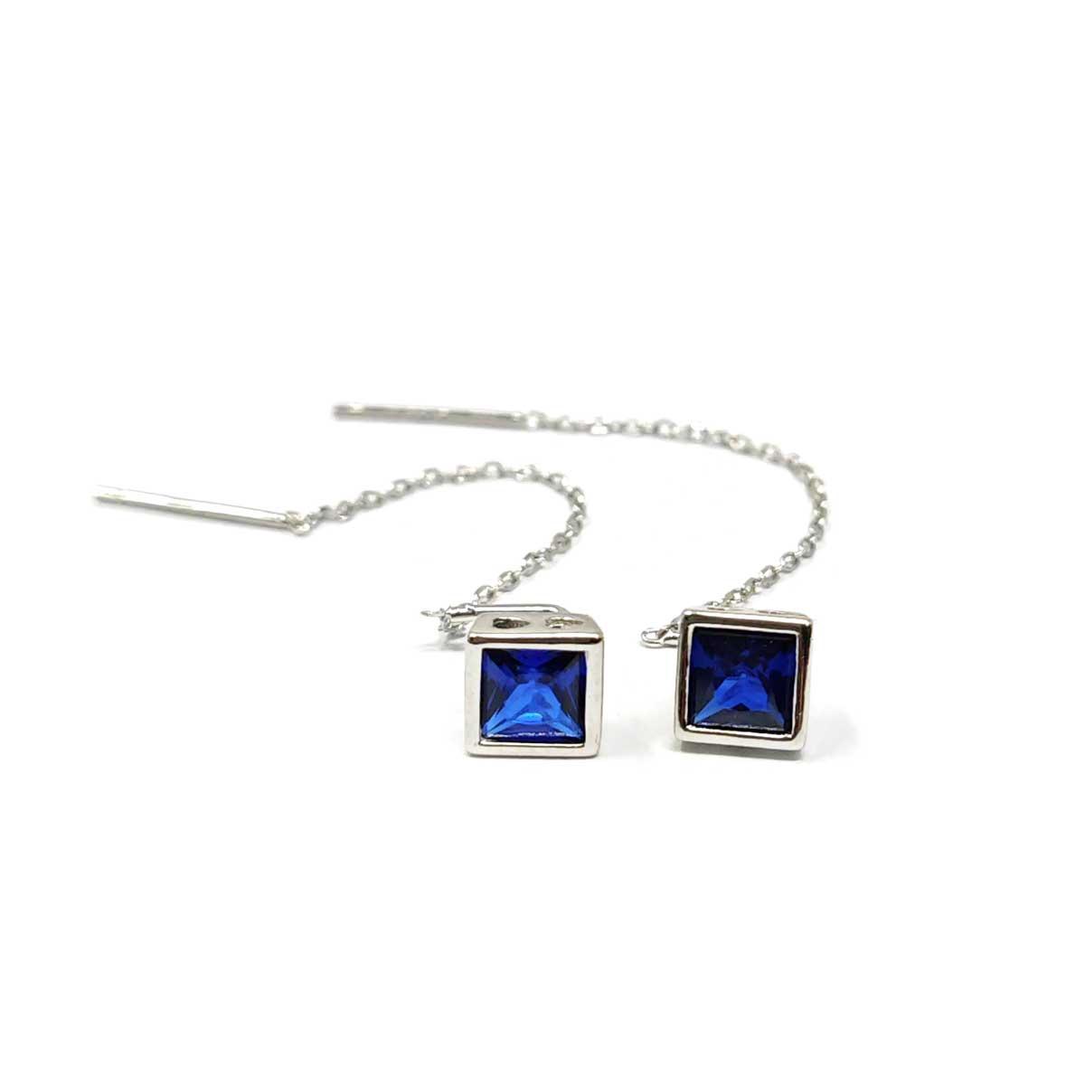 Monorecchino quadrato con pietra verde o blu disponibile in argento 925 rodiato bianco e in argento 925 dorato.