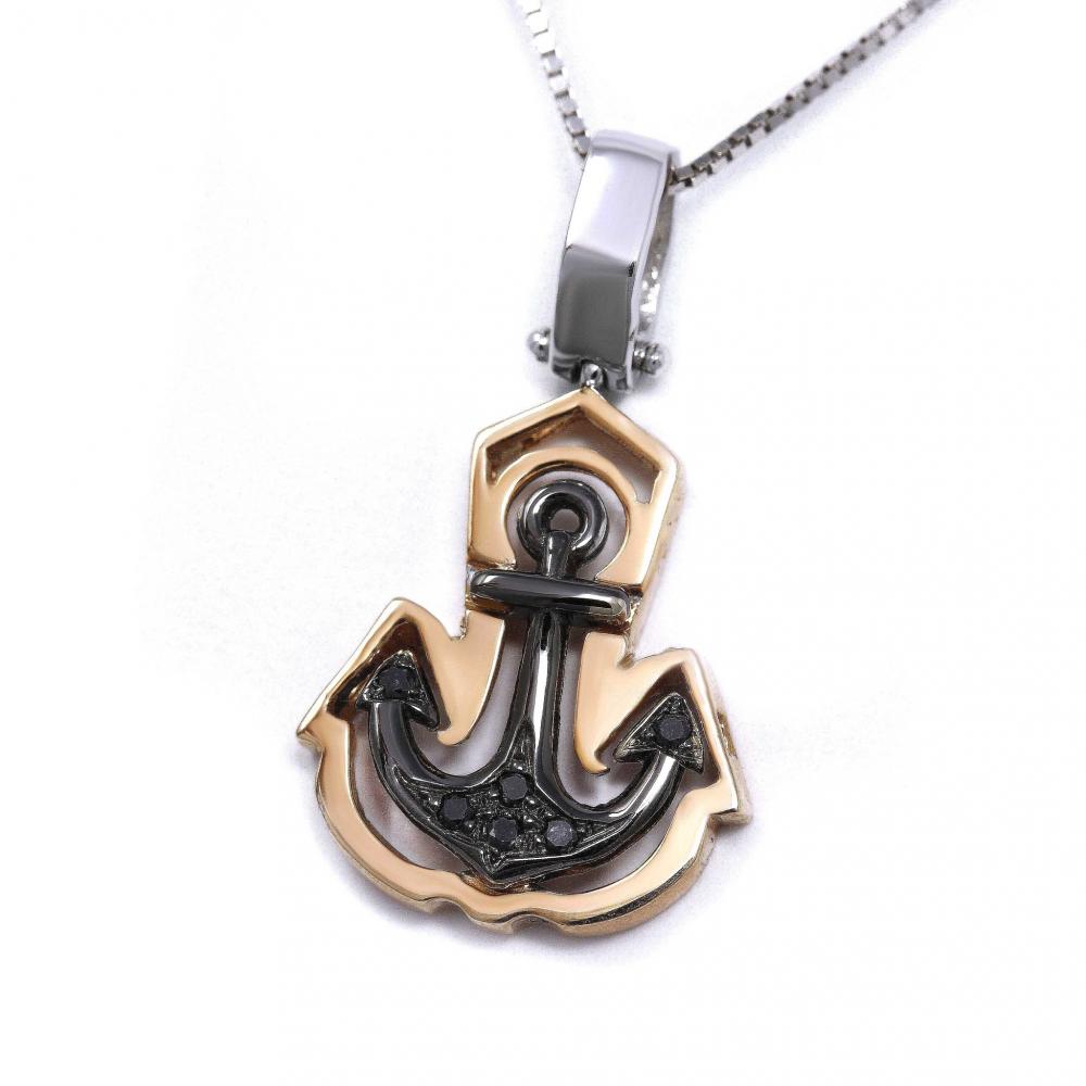 Pendente Ancora in Oro Rosa con Diamanti Neri