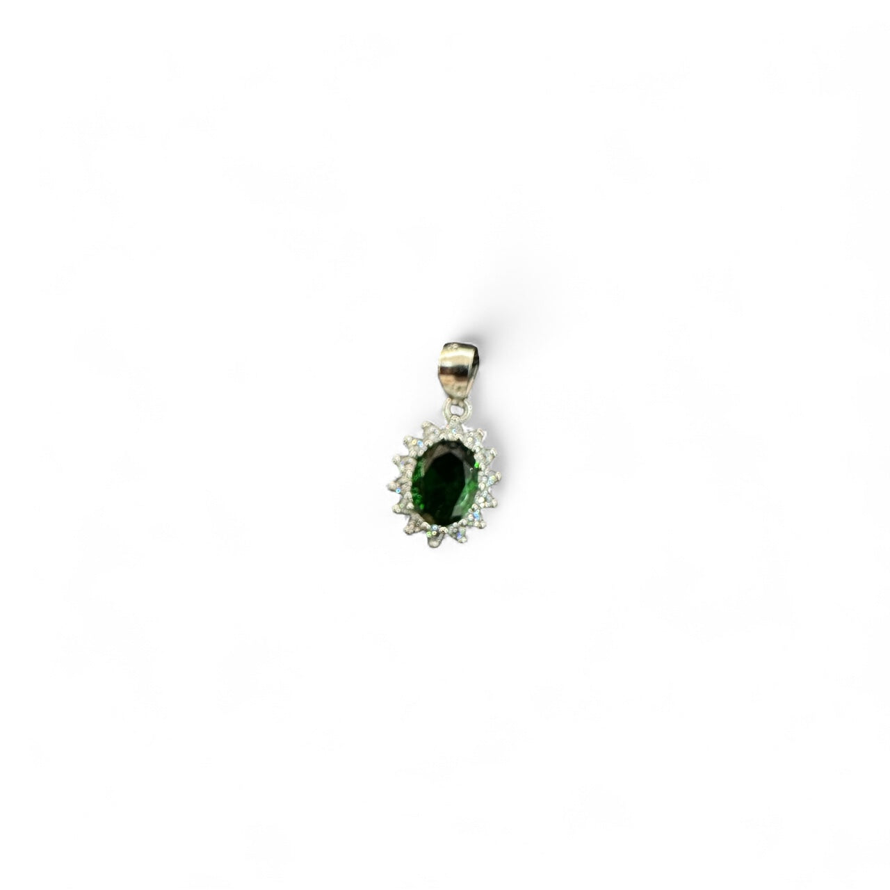 Pendente Cestello in Argento 925 con Pietra Verde 9x7