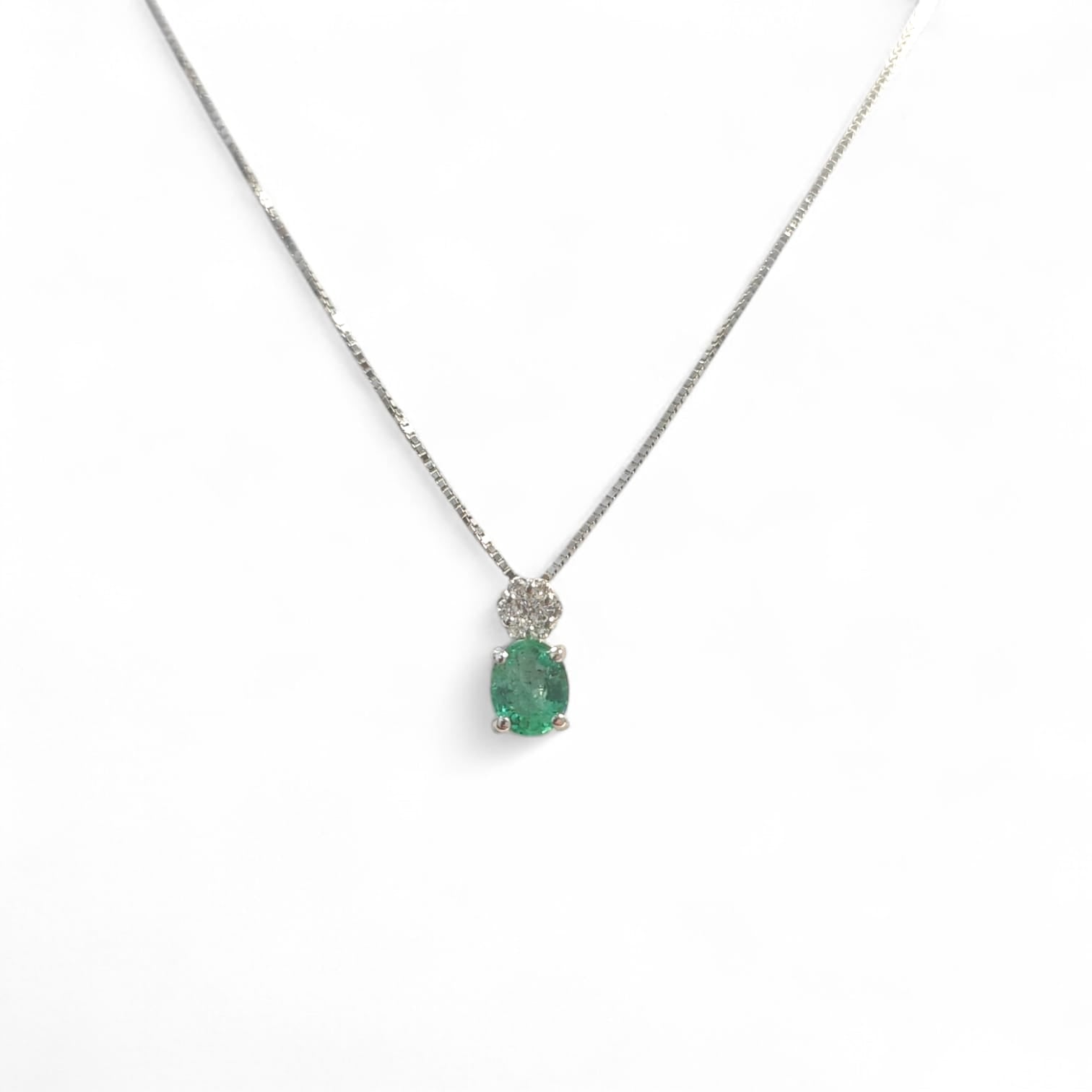 Pendente con Smeraldo CT 0.35 e Diamante CT 0.05