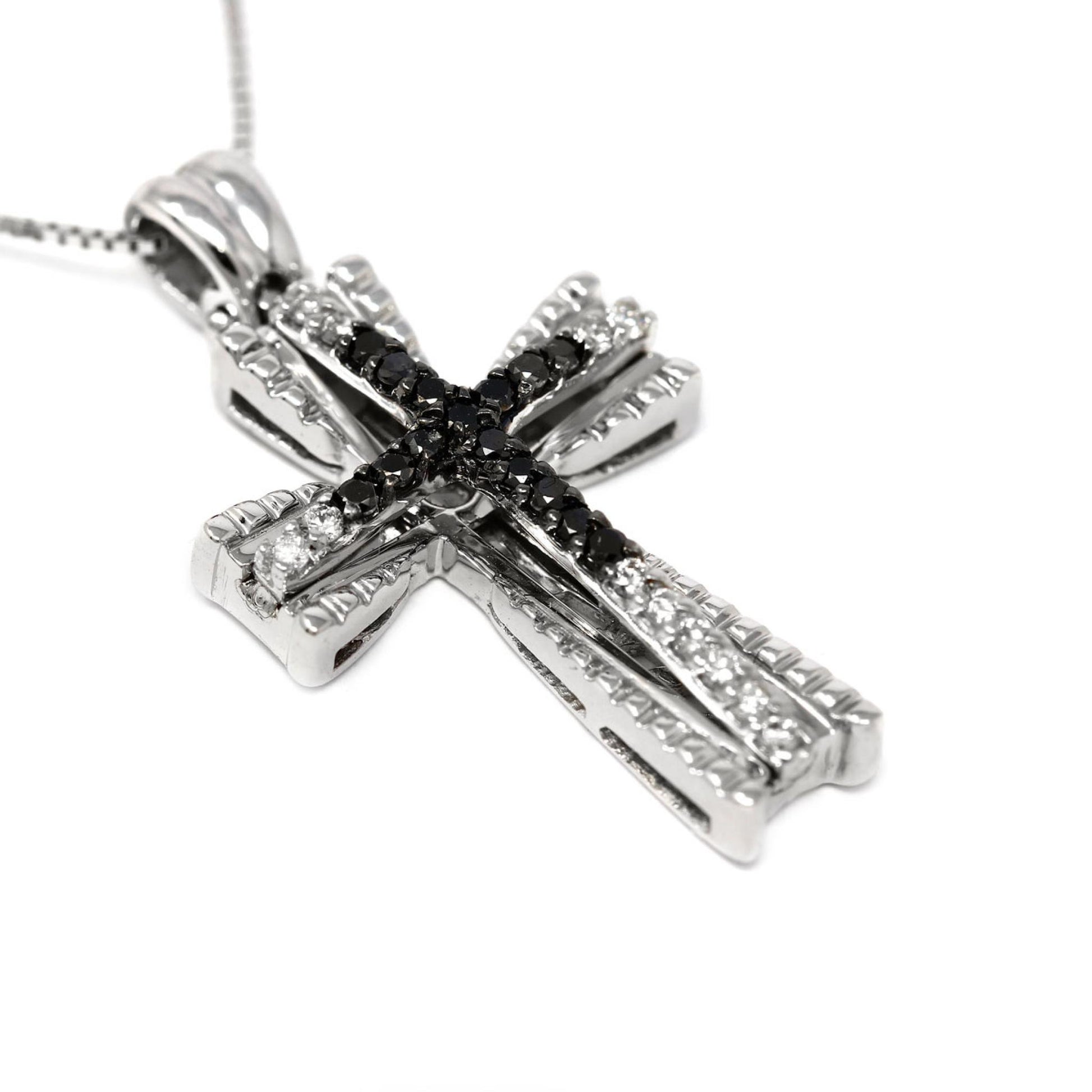 Pendente Croce con Diamanti Neri CT 0.08 e Bianchi CT 0.06