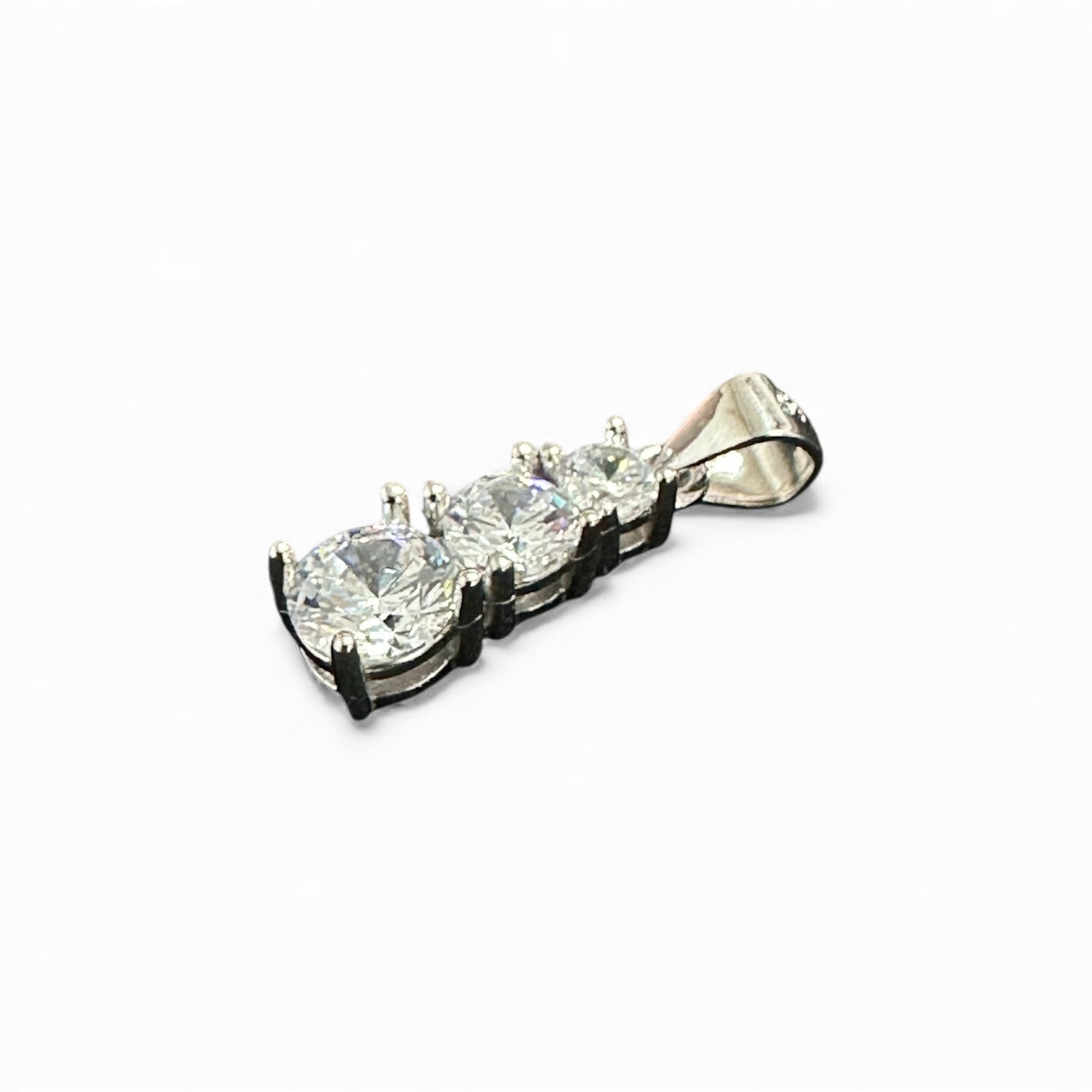 Pendente luminoso in stile trilogy, composto da tre zirconi brillanti incastonati in verticale. disponibile in tre misure per adattarsi a ogni stile: dal più discreto al più evidente. Ideale da abbinare a catenine sottili per un look elegante e senza tempo.