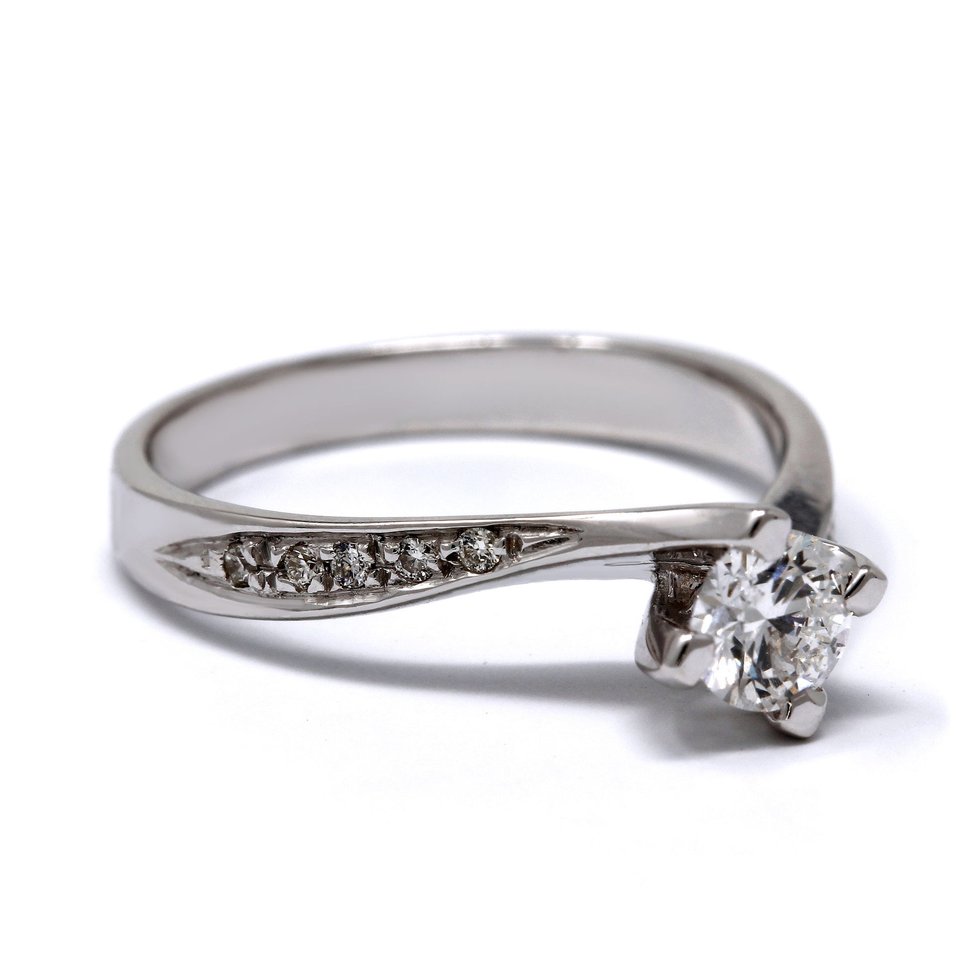 Monta centralmente un diamante bianco taglio brillante il cui peso è CT 0.41 VS1 F