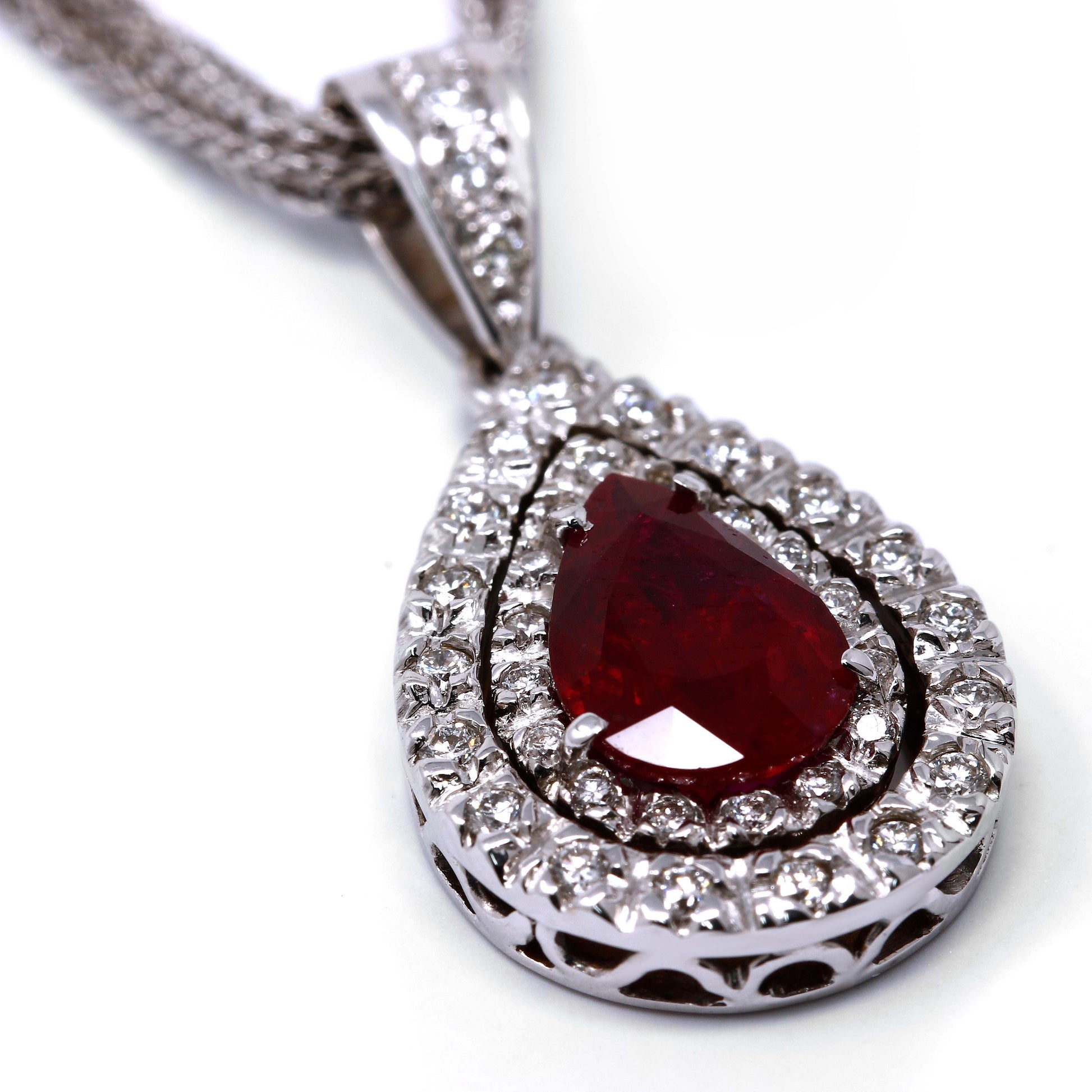 Pendente a Goccia con Rubino CT 2.12 e Diamanti Bianchi CT 0.40