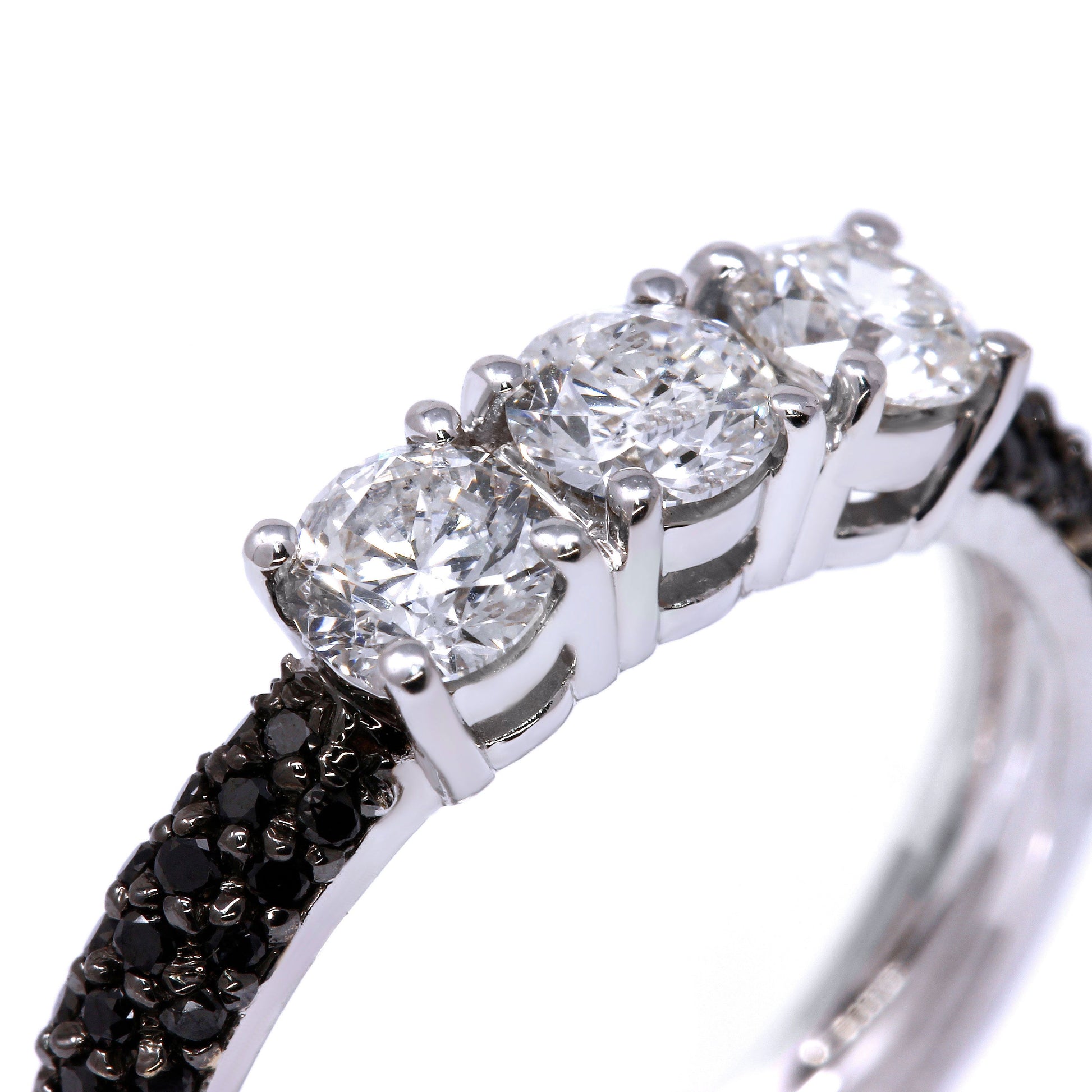 Anello Trilogy con Diamanti Bianchi Centrali CT 0.94 e Diamanti Neri CT 0.19