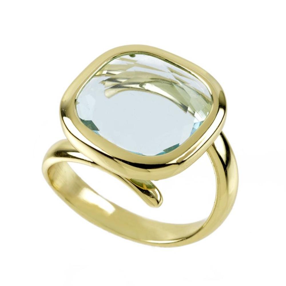 Anello Aquacaramelle con pasta vitrea acquamarina taglio antico