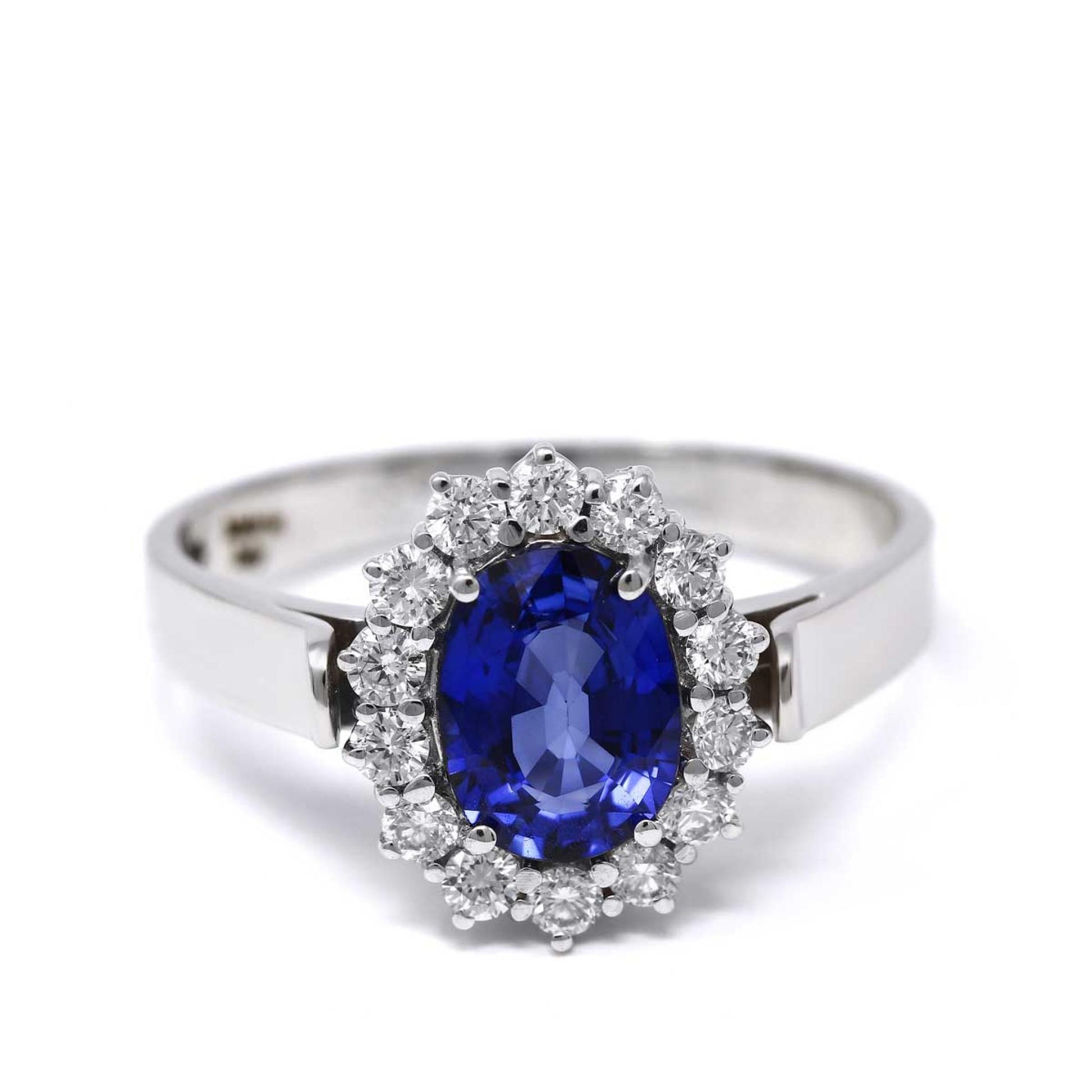Anello con Zaffiro Ceylon CT 1.45 e Diamanti CT 0.42