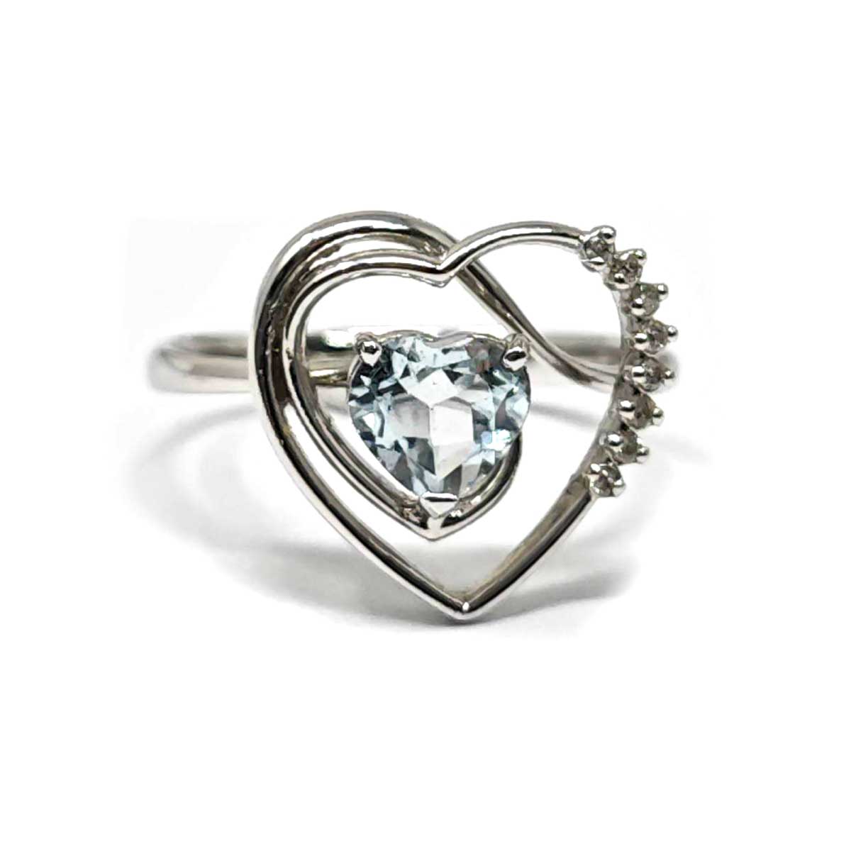 Anello Cuore con Acquamarina CT 0.80 e Diamanti CT 0.05