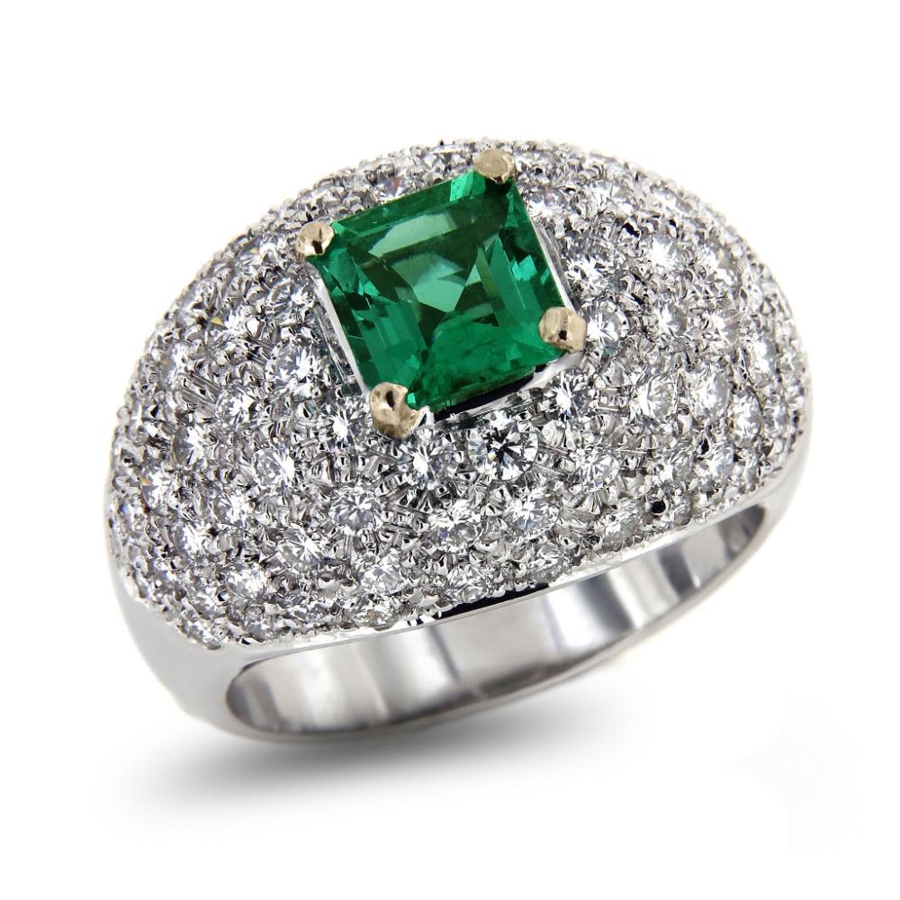 Anello Fascia con Diamanti CT 2.59 VVS IF F e Smeraldo centrale Brasile CT 1.34