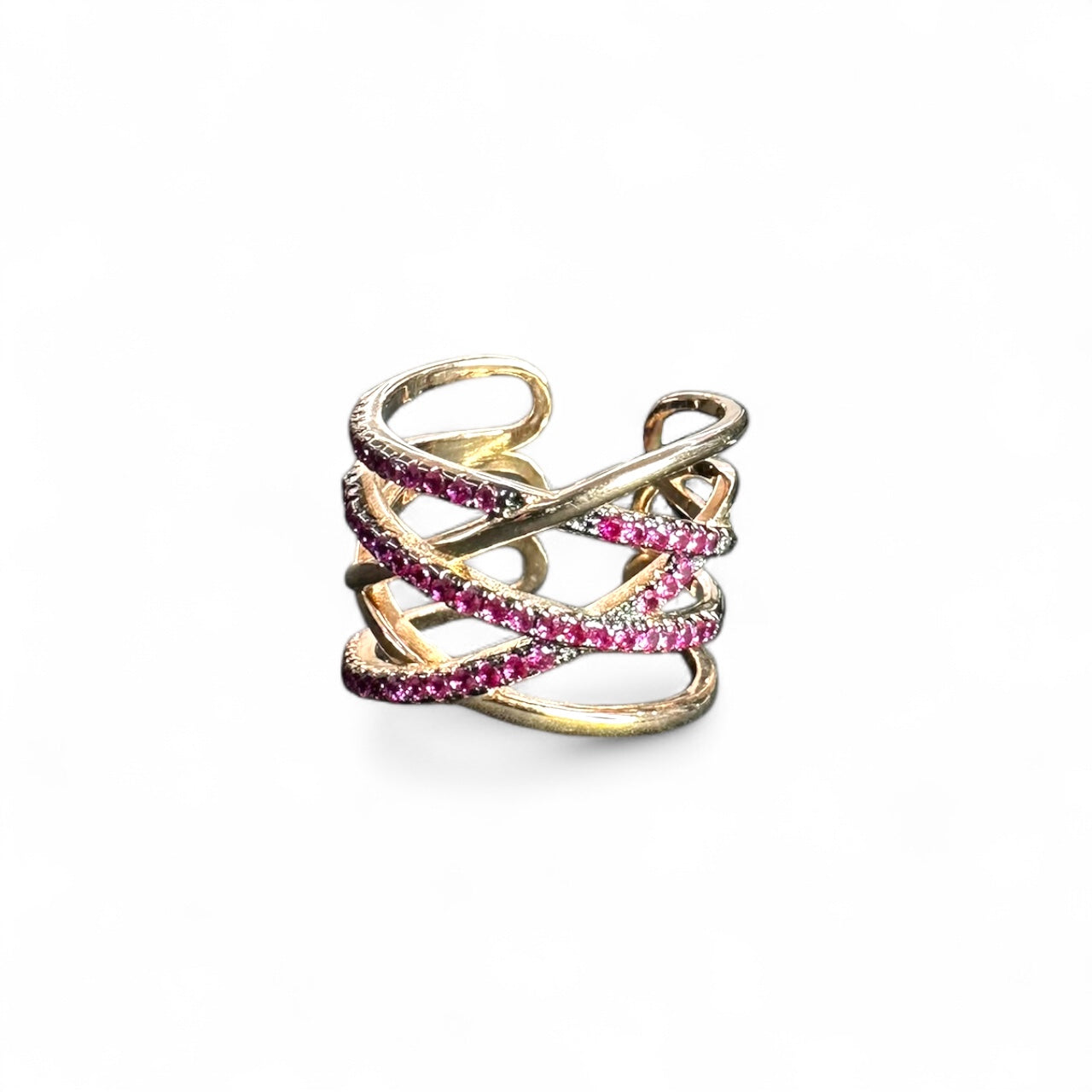Anello Fascia in Argento 925 Rosato con Zirconi Viola mis 13.5 Regolabile