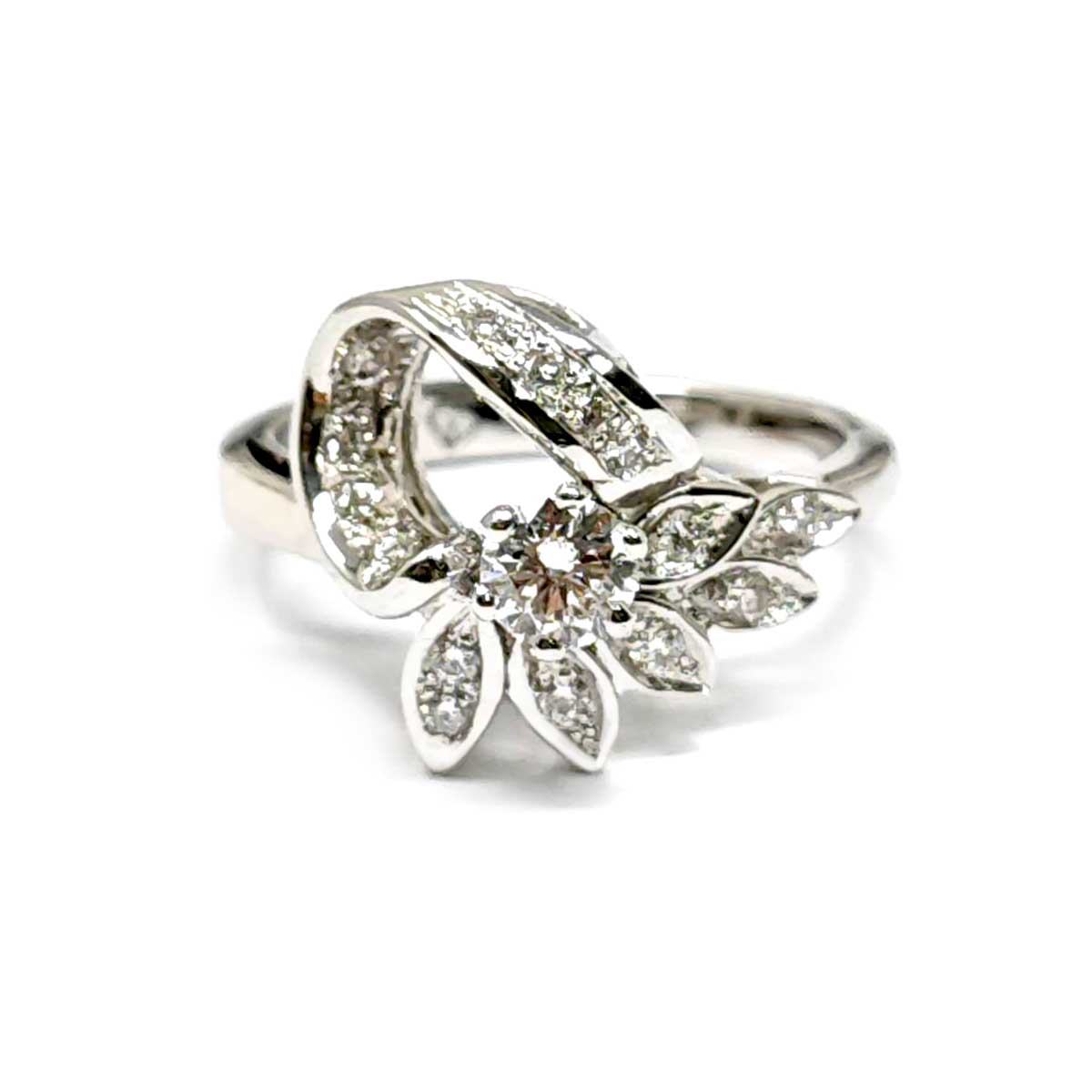 Anello Stilizzato con 1 Diamante CT 0.31 e 15 Diamanti Laterali CT 0.23