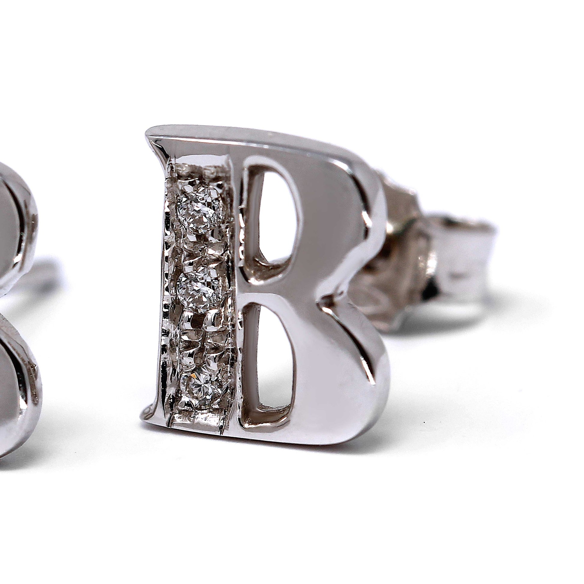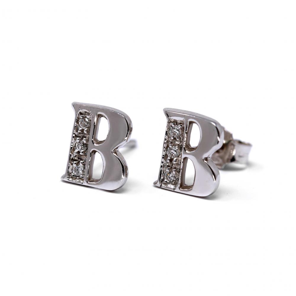 Orecchini a lettera B con Diamanti Bianchi CT 0.06