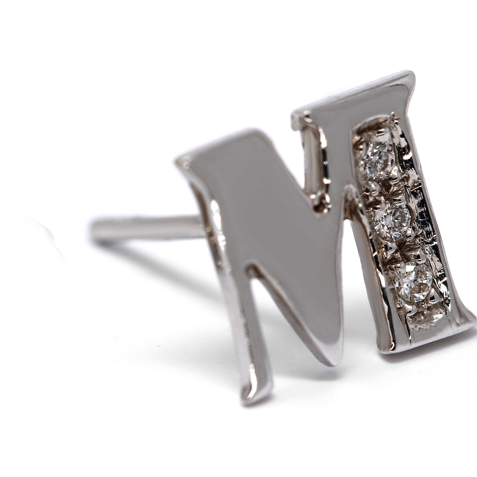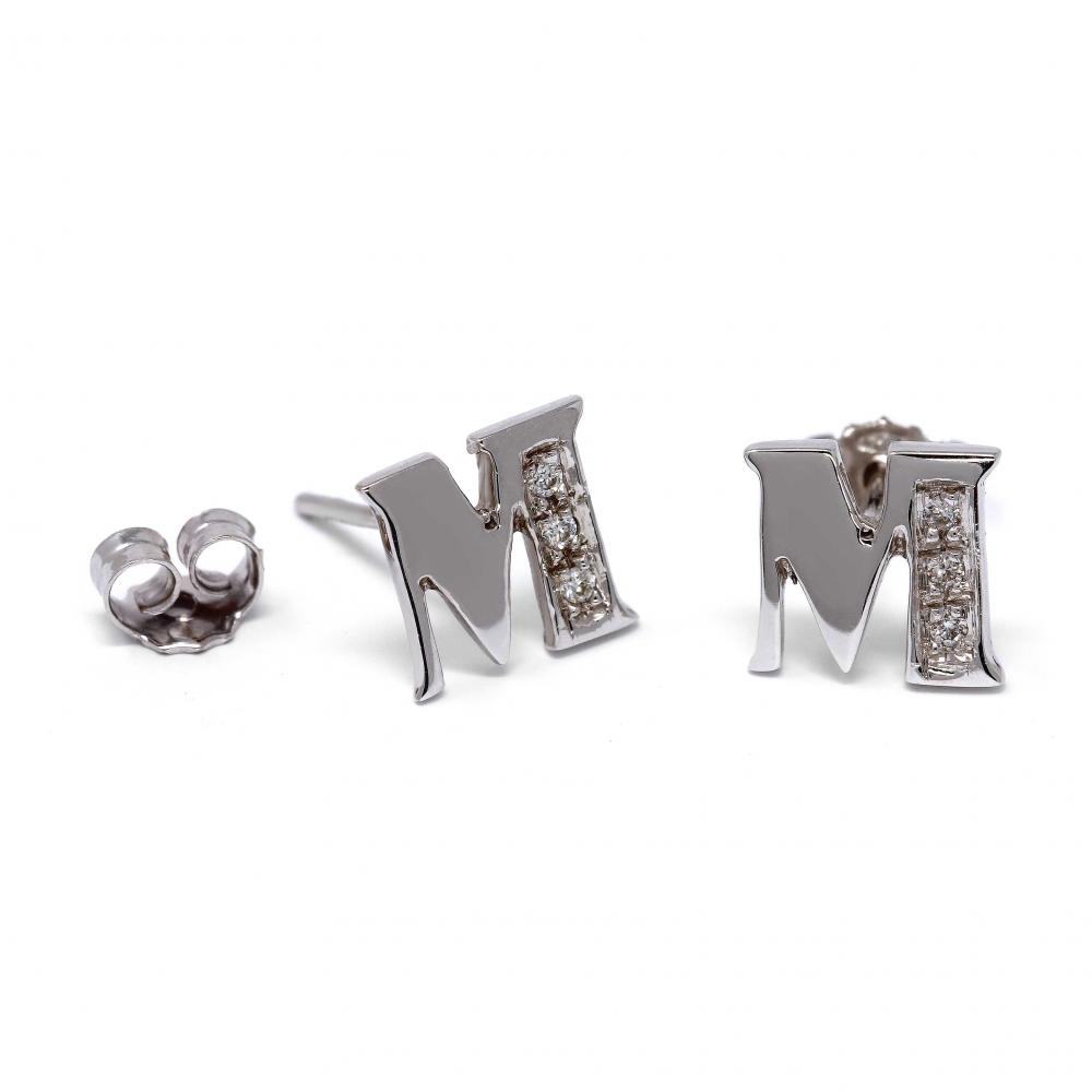 Orecchini a lettera M con Diamanti Bianchi CT 0.06